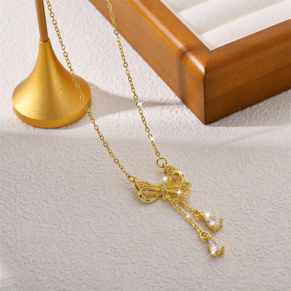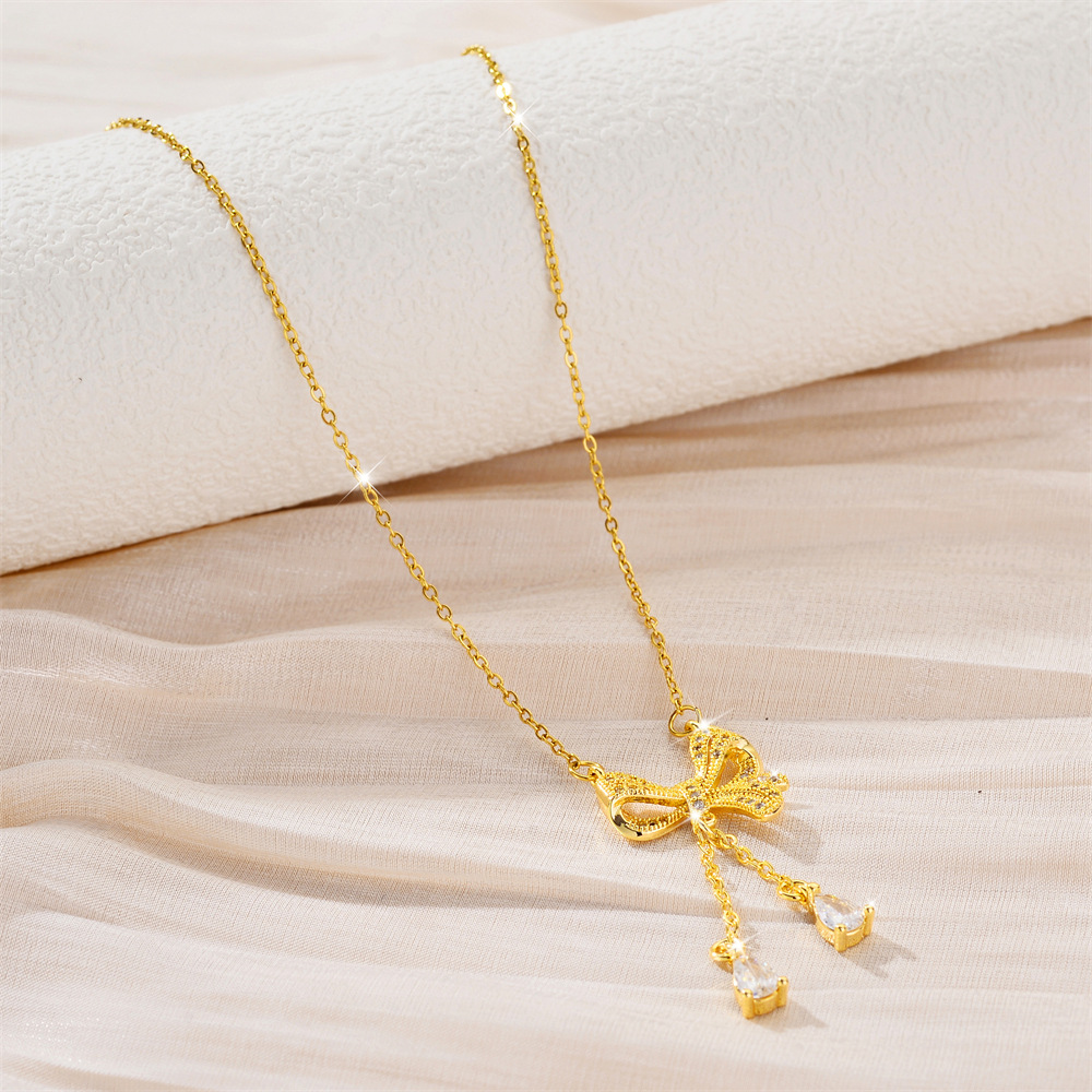 Titanová ocel náhrdelník, Titanium ocel, Bowknot, módní šperky & pro ženy & s drahokamu, více barev na výběr, Prodáno By PC