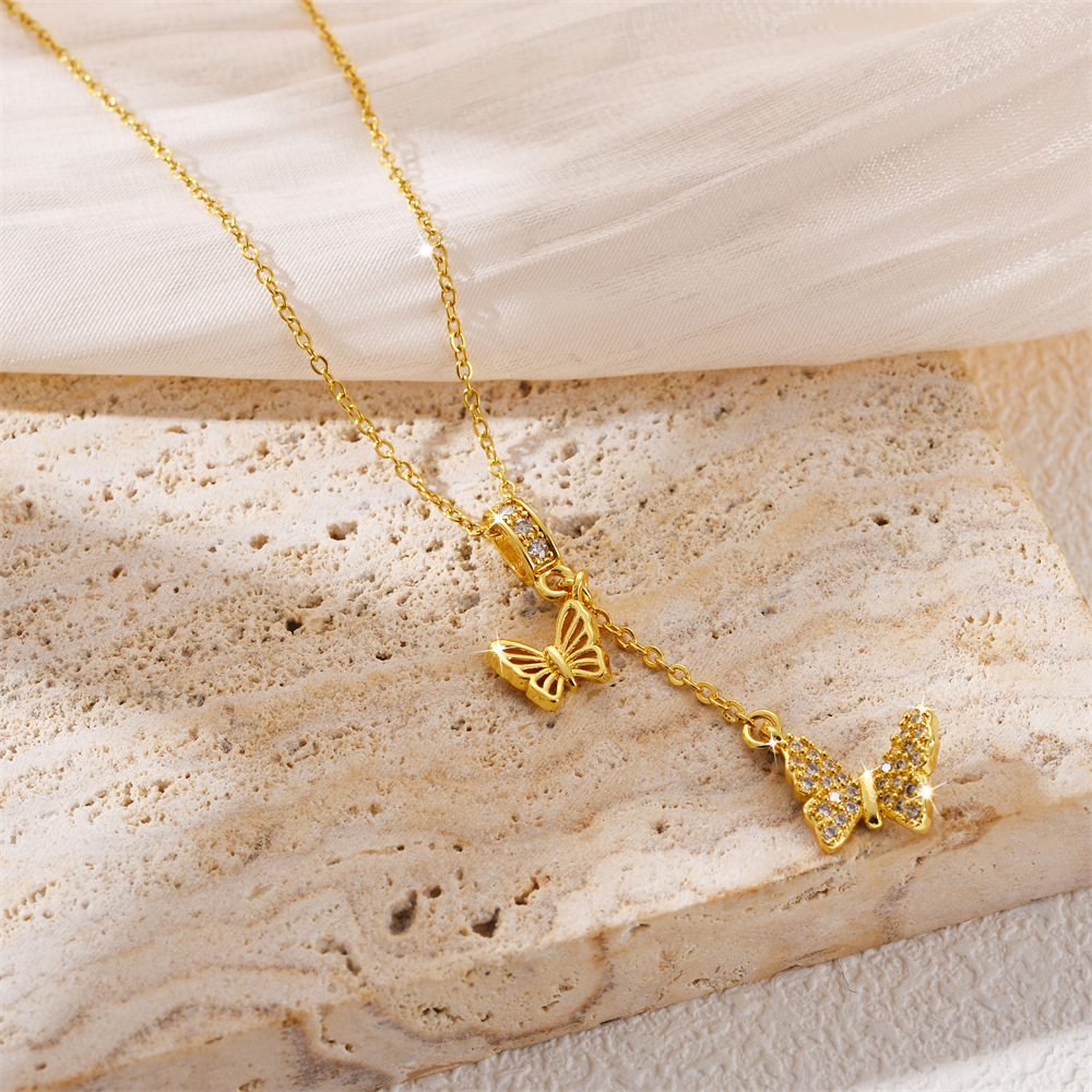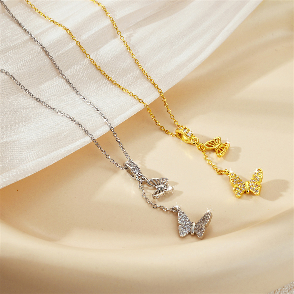Titanová ocel náhrdelník, Titanium ocel, s Drahokam, Motýl, módní šperky & pro ženy, více barev na výběr, Prodáno By PC