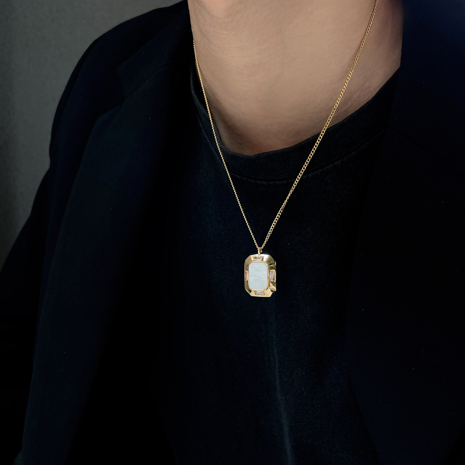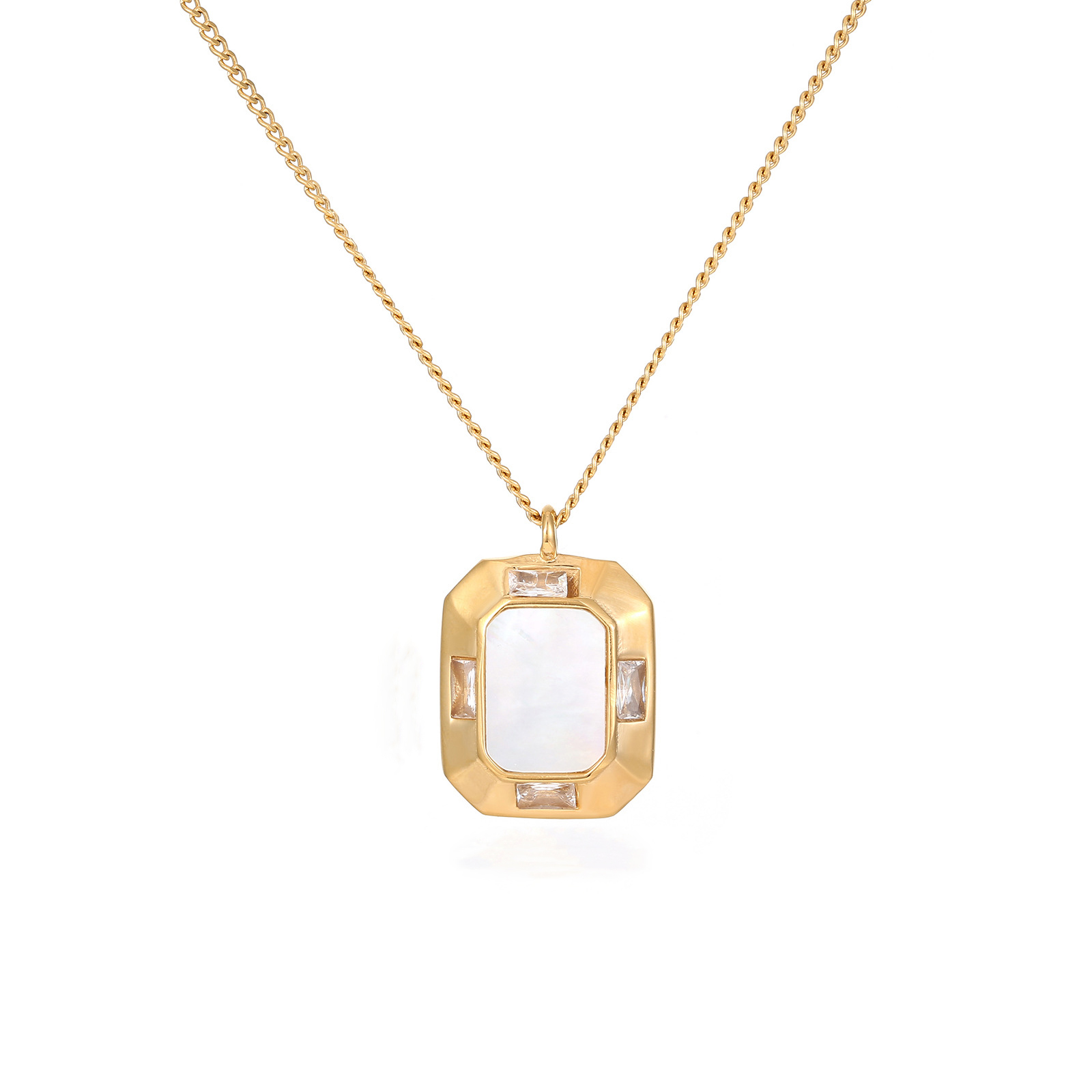 Titanová ocel náhrdelník, Titanium ocel, s White Shell, módní šperky & micro vydláždit kubické zirkony & pro ženy, zlatý, Prodáno By PC