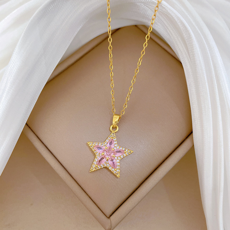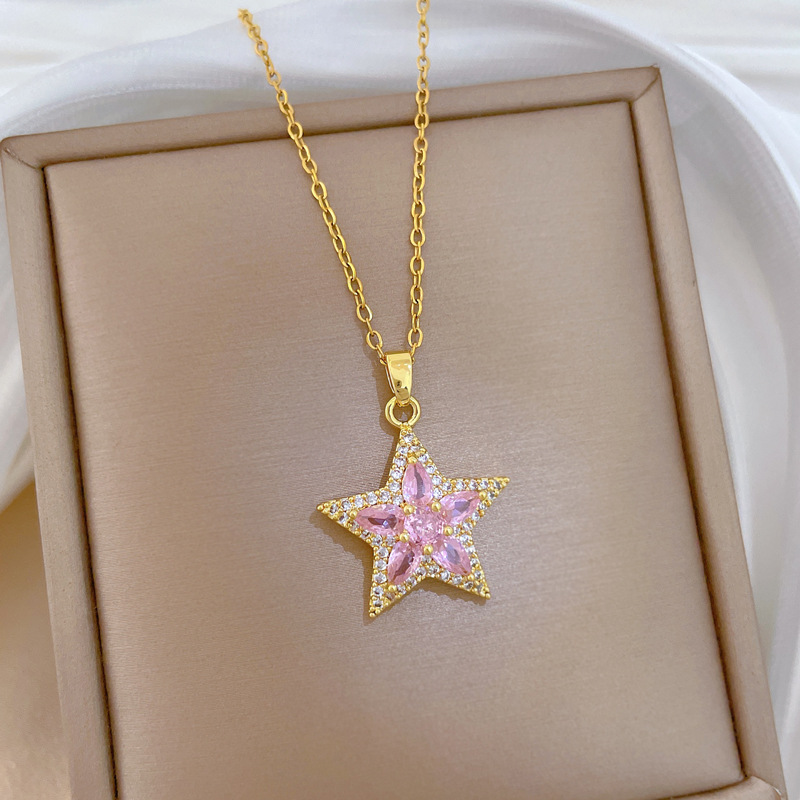 Titanová ocel náhrdelník, Titanium ocel, s Mosaz, Hvězda, módní šperky & micro vydláždit kubické zirkony & pro ženy, zlatý, Prodáno By PC