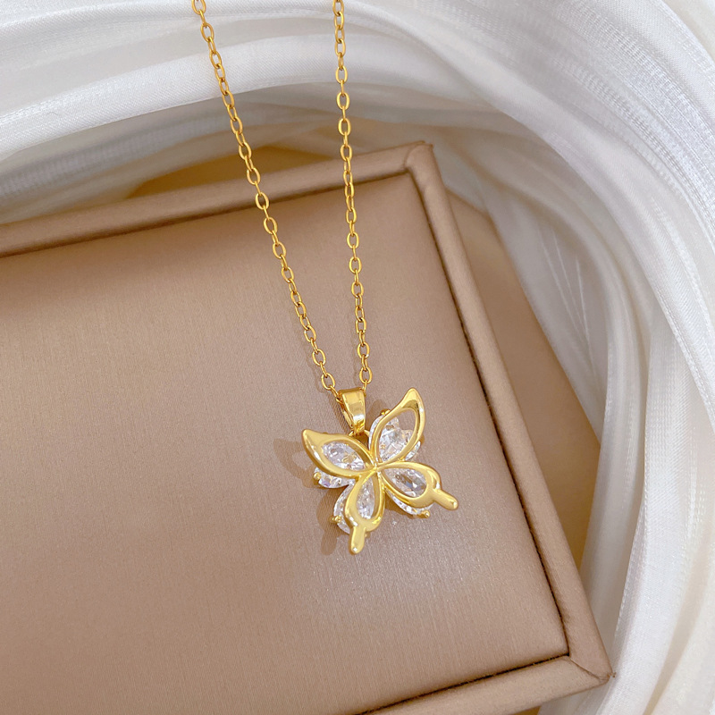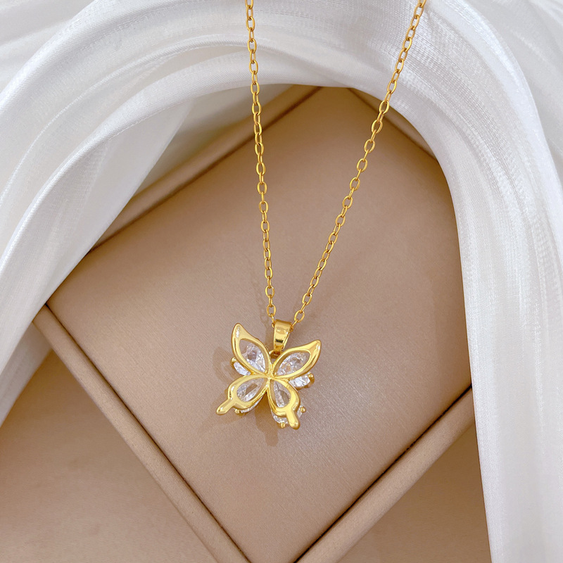 Titanová ocel náhrdelník, Titanium ocel, s Mosaz, Motýl, módní šperky & micro vydláždit kubické zirkony & pro ženy, zlatý, Prodáno By PC