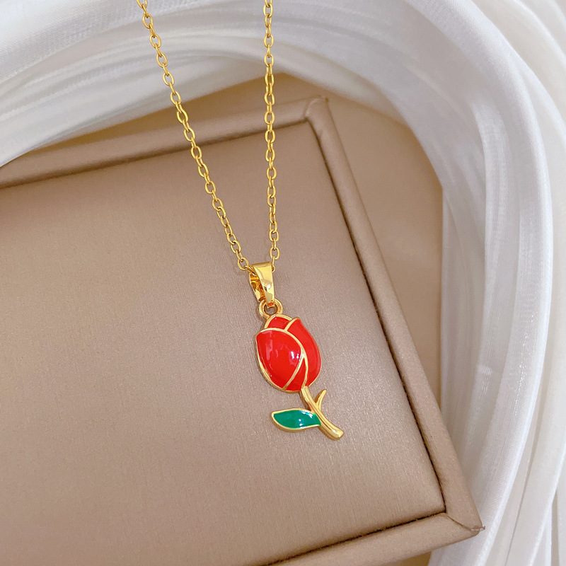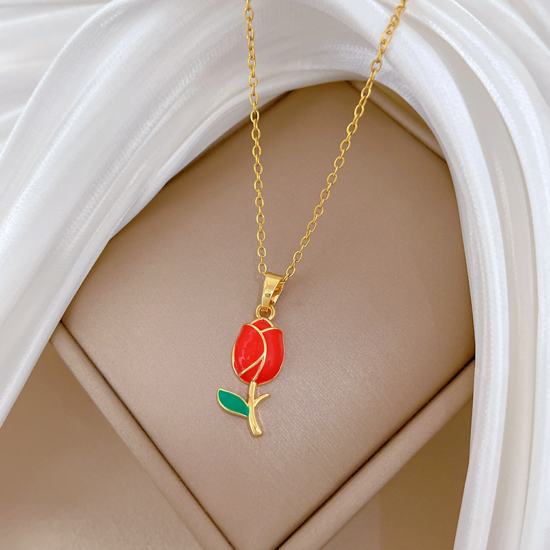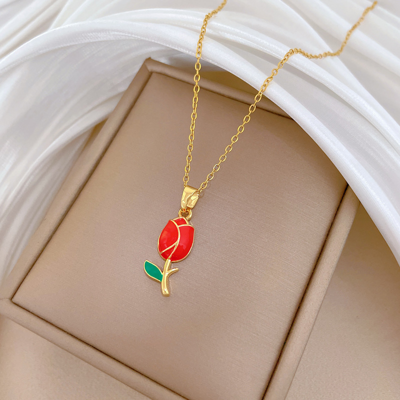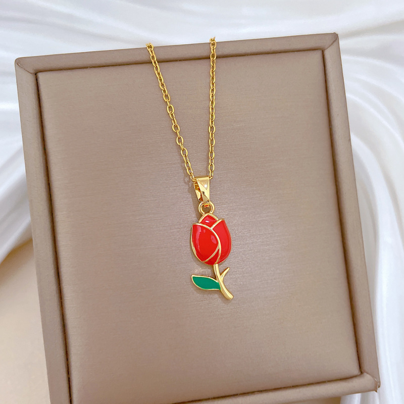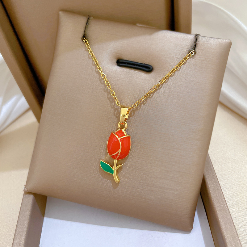 Titanová ocel náhrdelník, Titanium ocel, s Mosaz, Rose, módní šperky & pro ženy & smalt, zlatý, Prodáno By PC