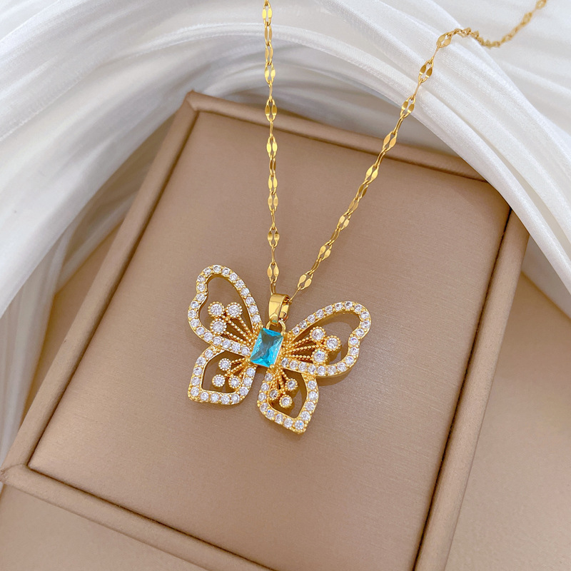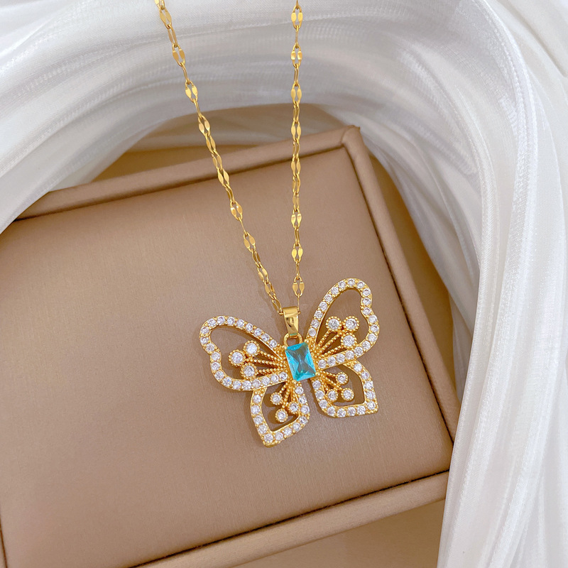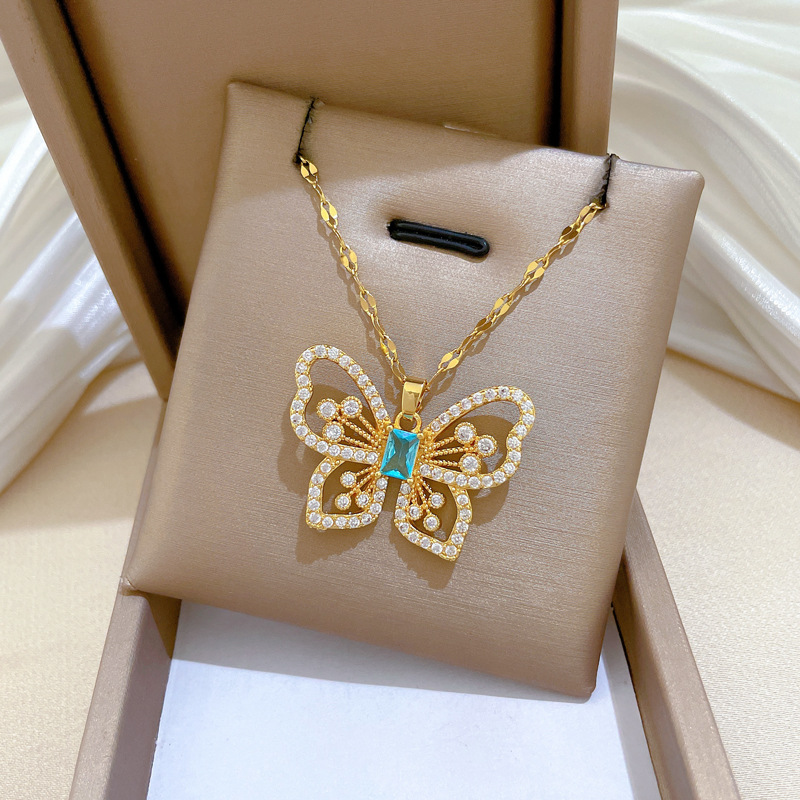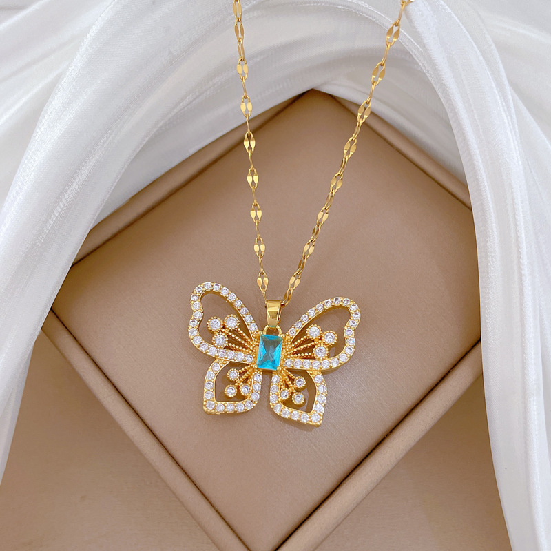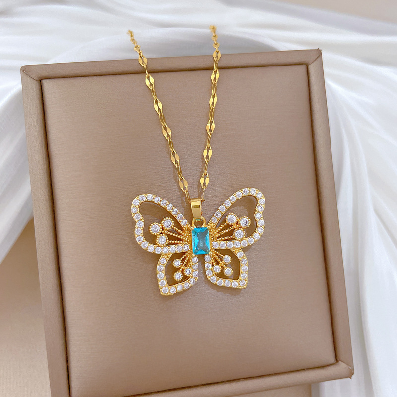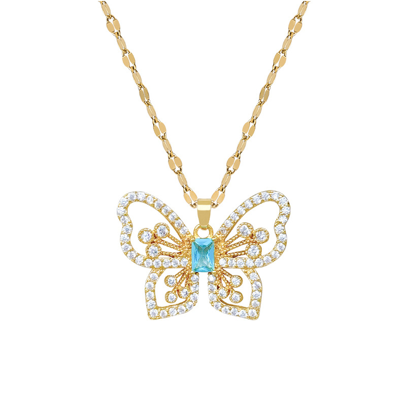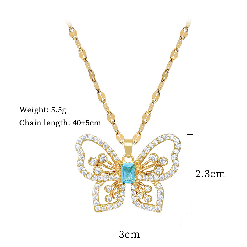 Titanová ocel náhrdelník, Titanium ocel, s Mosaz, Motýl, micro vydláždit kubické zirkony & pro ženy & dutý, zlatý, Prodáno By PC
