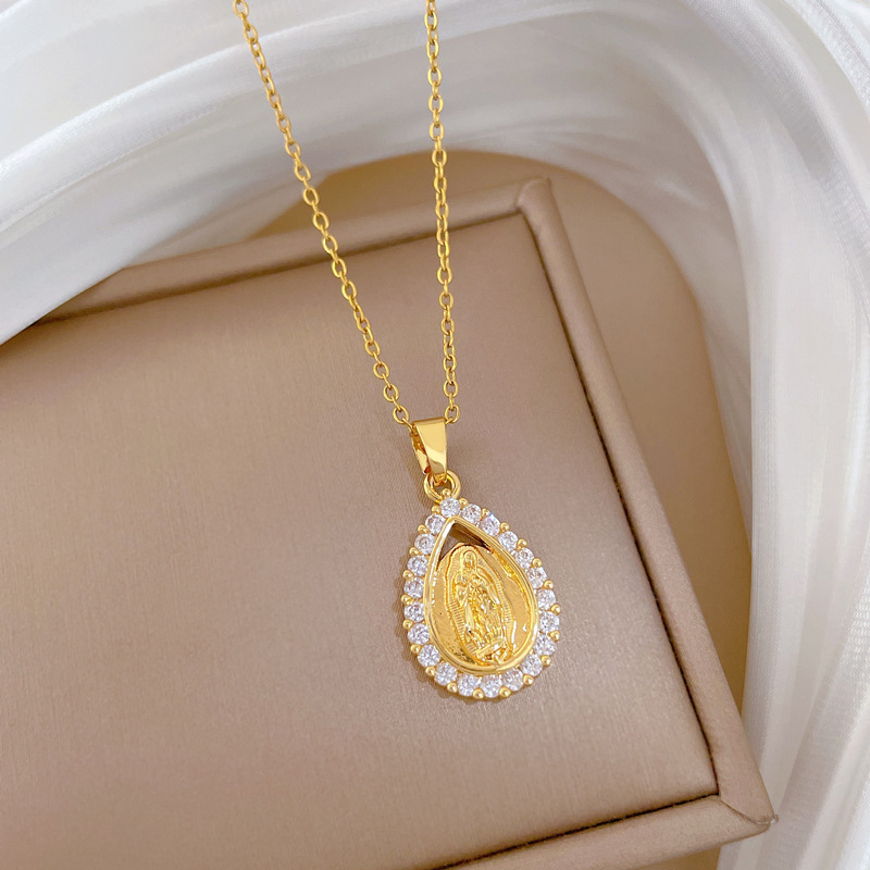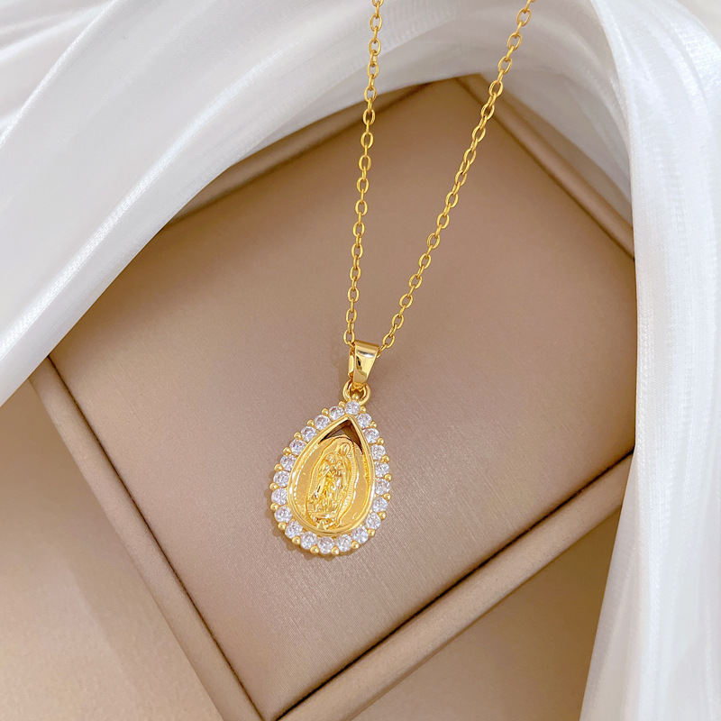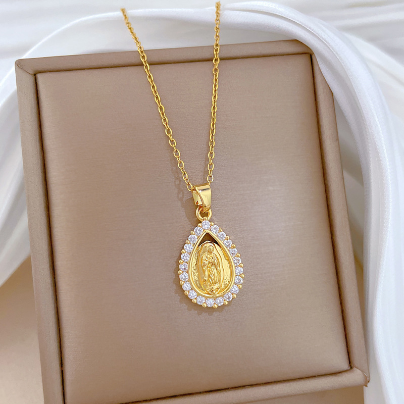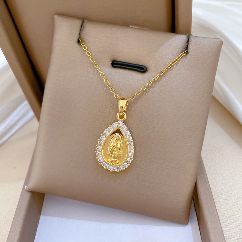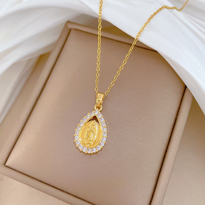 Titanová ocel náhrdelník, Titanium ocel, s Mosaz, Slza, módní šperky & micro vydláždit kubické zirkony & pro ženy, zlatý, Prodáno By PC