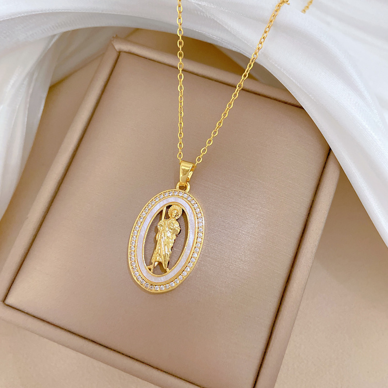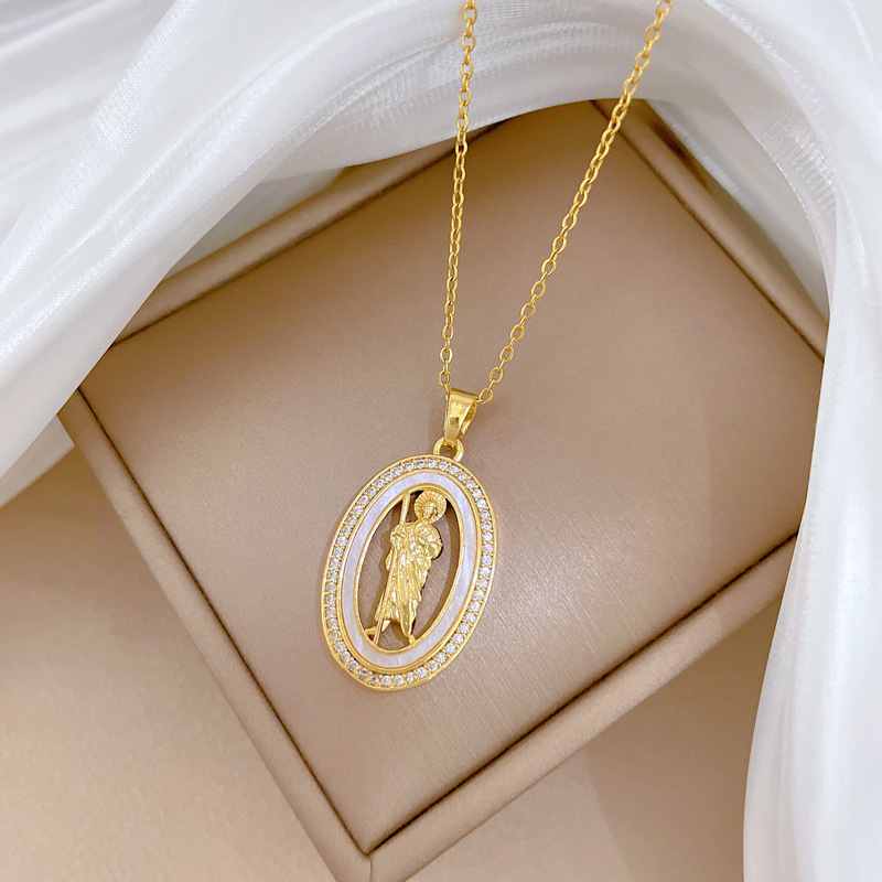 Titanová ocel náhrdelník, Titanium ocel, s Skořápka & Mosaz, Oválný, micro vydláždit kubické zirkony & pro ženy & dutý, zlatý, Prodáno By PC