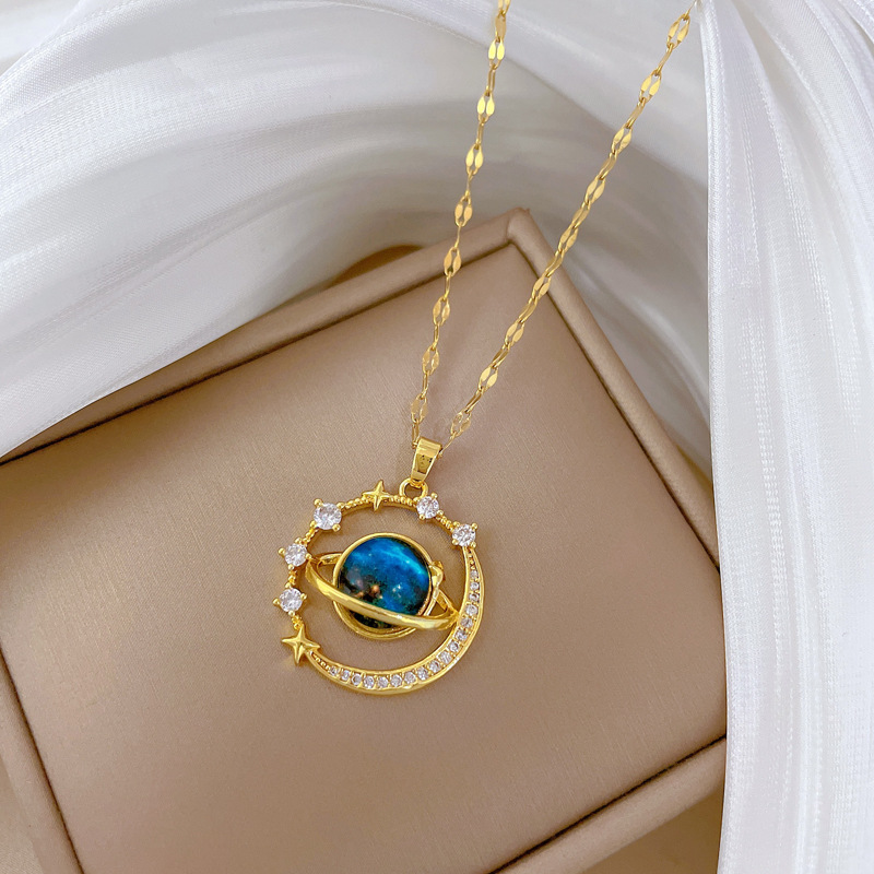 Titanová ocel náhrdelník, Titanium ocel, s Pryskyřice & Mosaz, micro vydláždit kubické zirkony & pro ženy & dutý, zlatý, Prodáno By PC