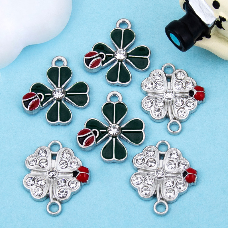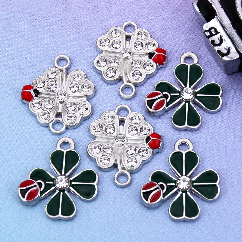 Zinek Connector, Four Leaf Clover, barva stříbrná á, DIY & smalt & s drahokamu, více barev na výběr, 16x18mm, Prodáno By PC