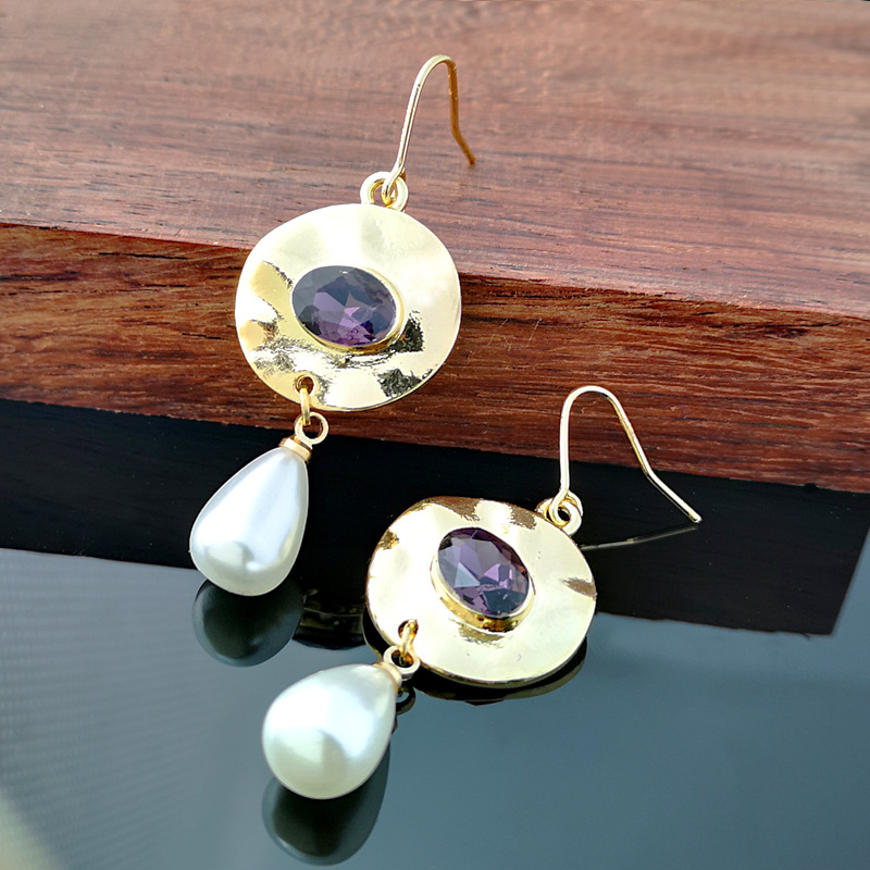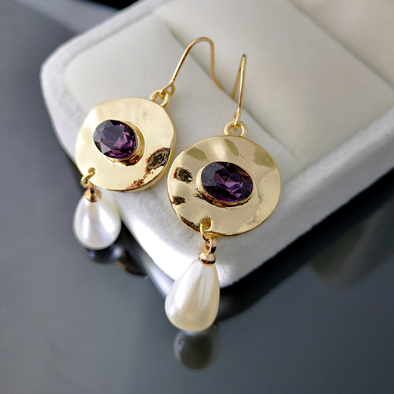 Zinek Drop náušnice, s Krystal & Plastové Pearl, barva pozlacený, Korejský styl & pro ženy, 17.50x47mm, Prodáno By Pair