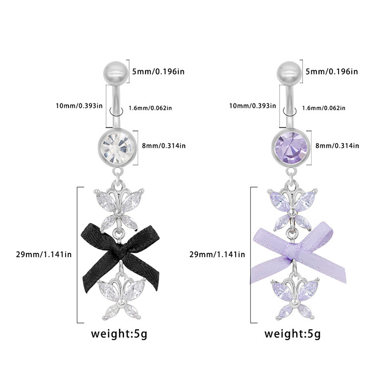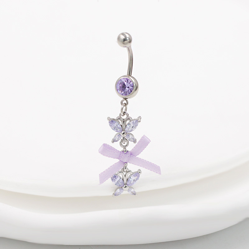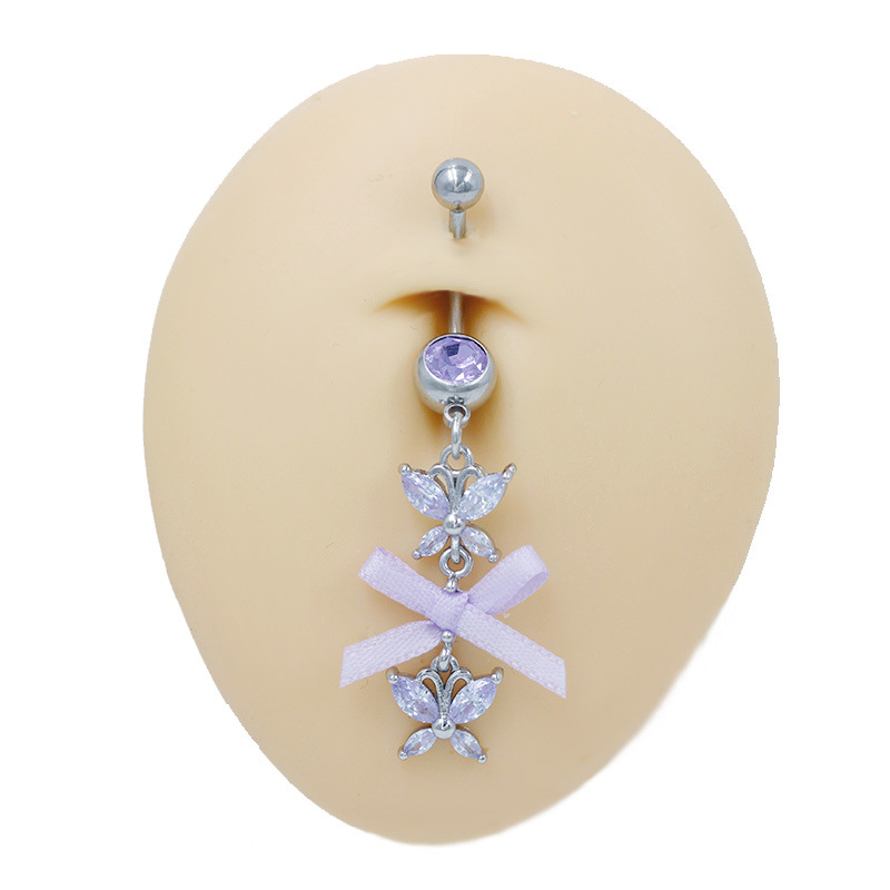 Zinek Piercing do pupíku, s Plátno & 304 Stainless Steel, Bowknot, á, unisex & micro vydláždit kubické zirkony, více barev na výběr, Prodáno By PC