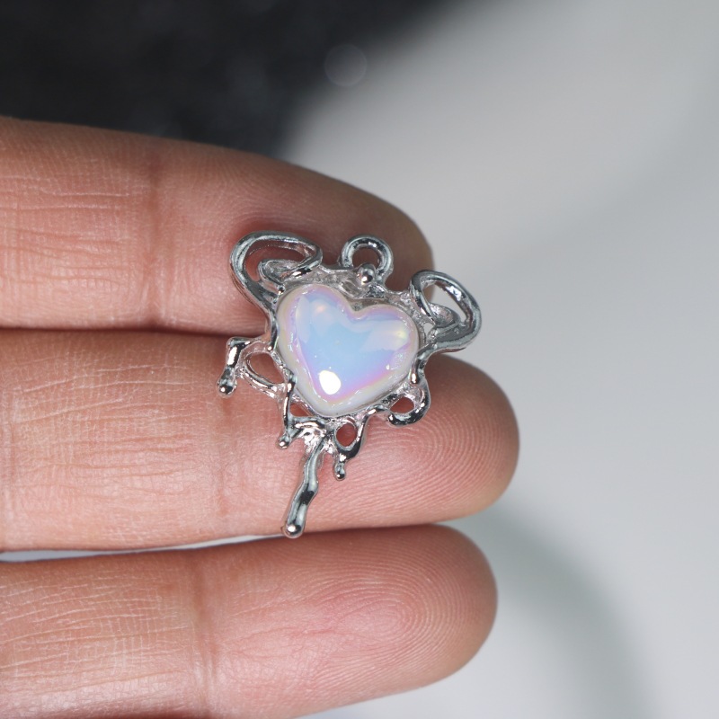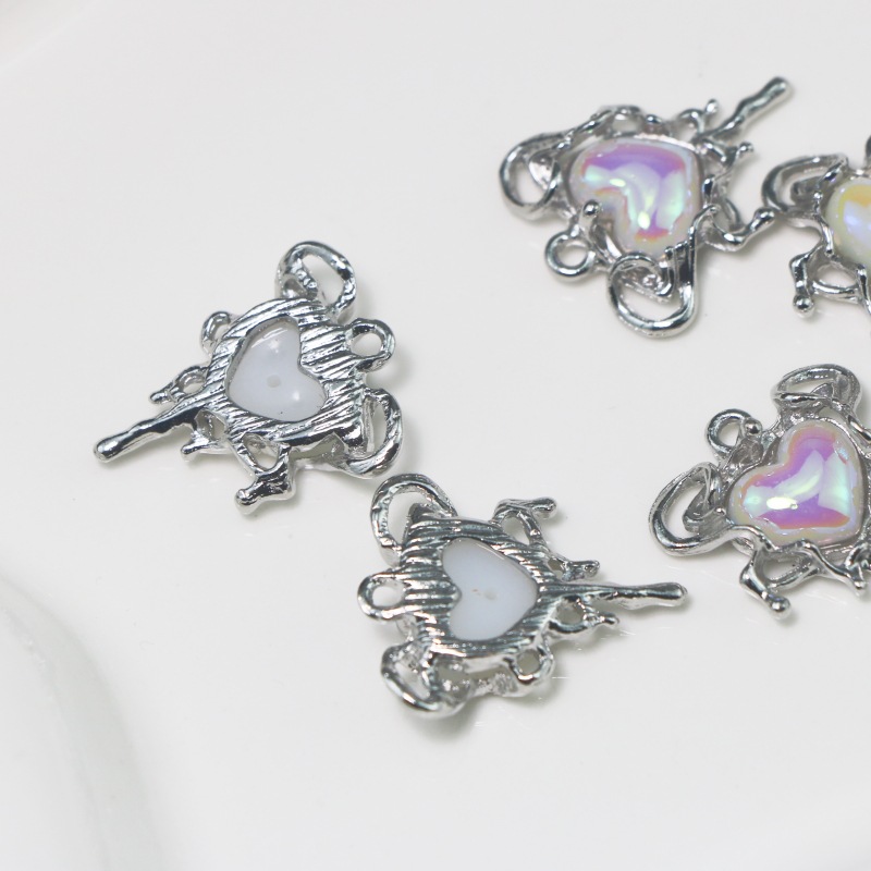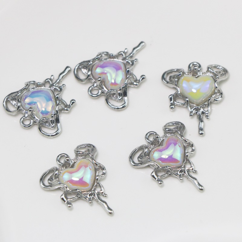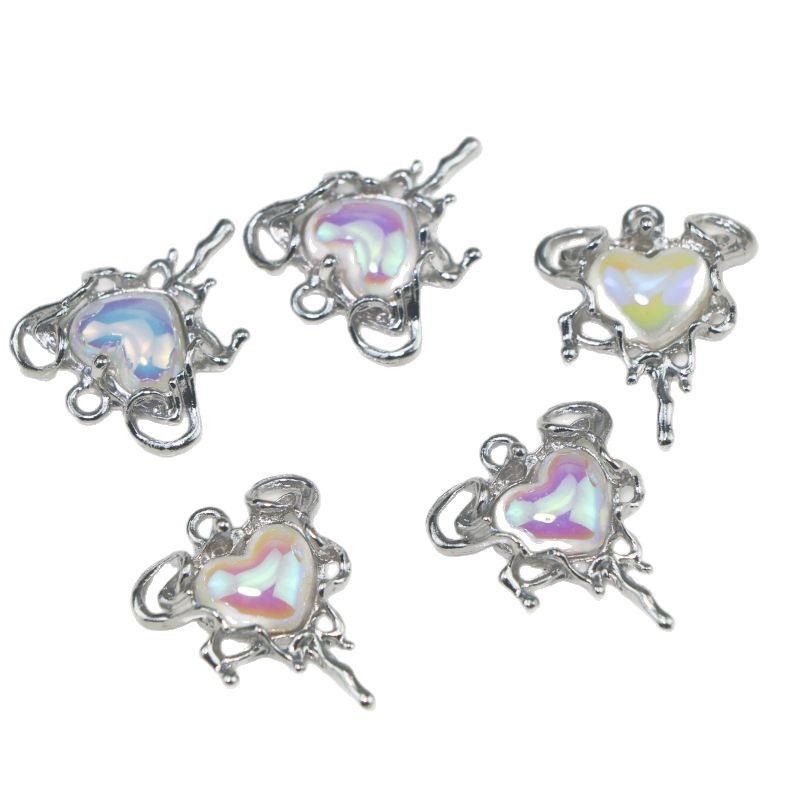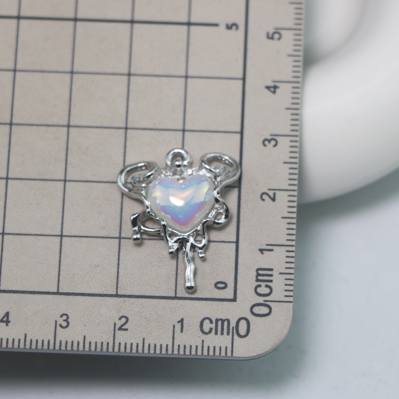 Zinek srdce Přívěsky, s Akryl, barva stříbrná á, DIY, stříbro, 6.50mm, Prodáno By PC