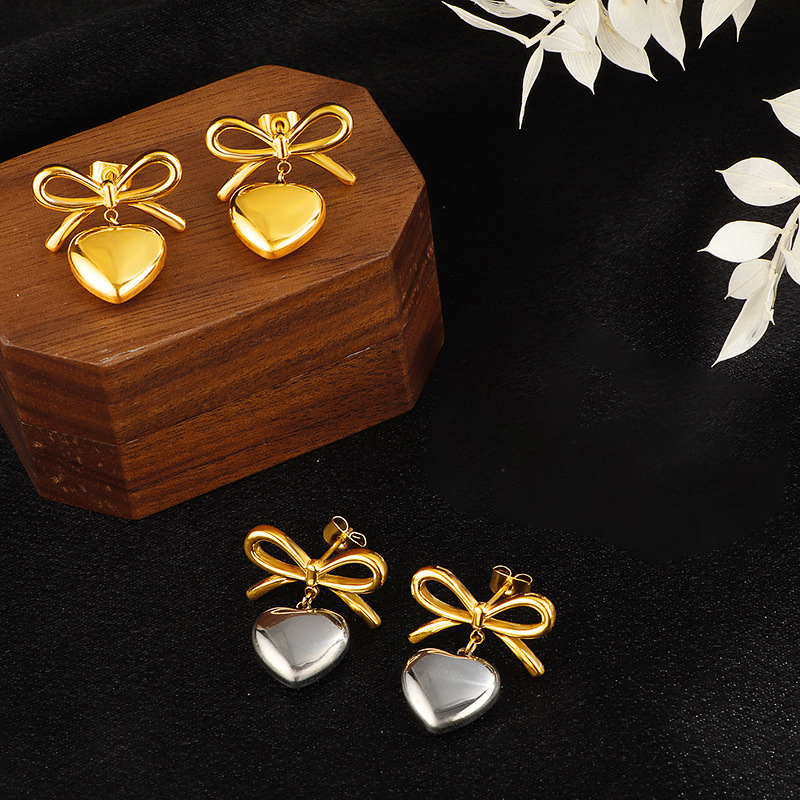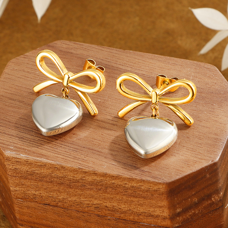 304 rustfrit stål Drop Earring, Bowknot, forgyldt, Vintage & for kvinde, flere farver til valg, 19x21mm, Solgt af par