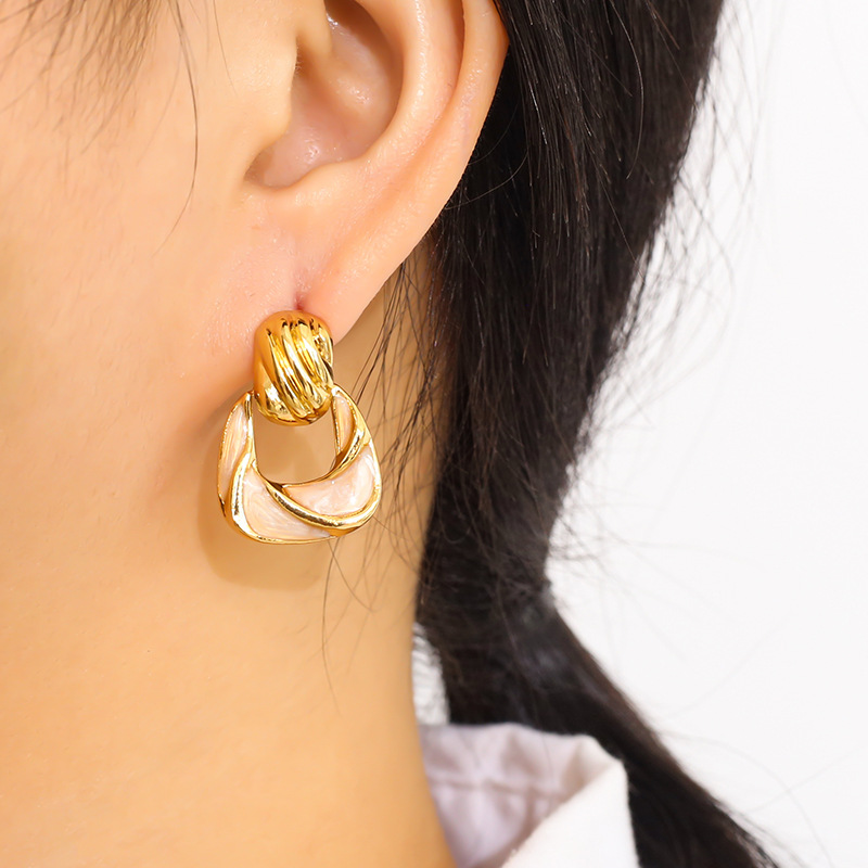 304 rustfrit stål Drop Earring, Geometrisk mønster, for kvinde & epoxy sticker, flere farver til valg, 17x24mm, Solgt af par