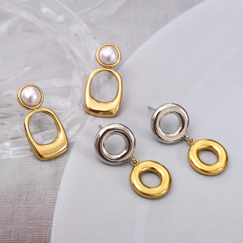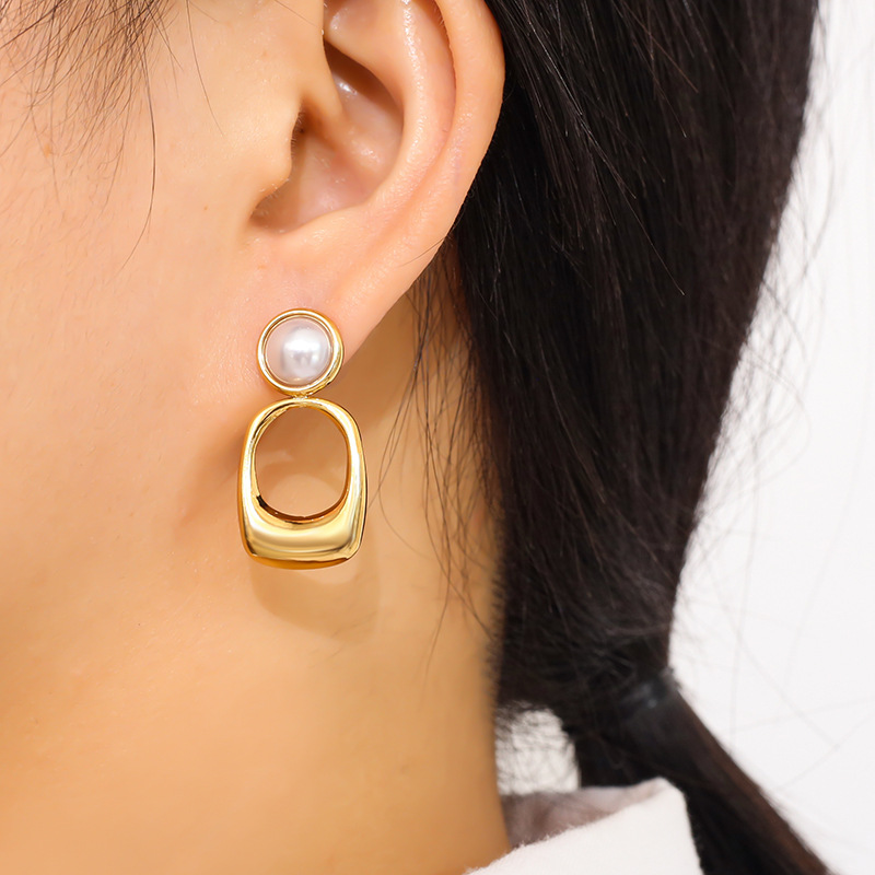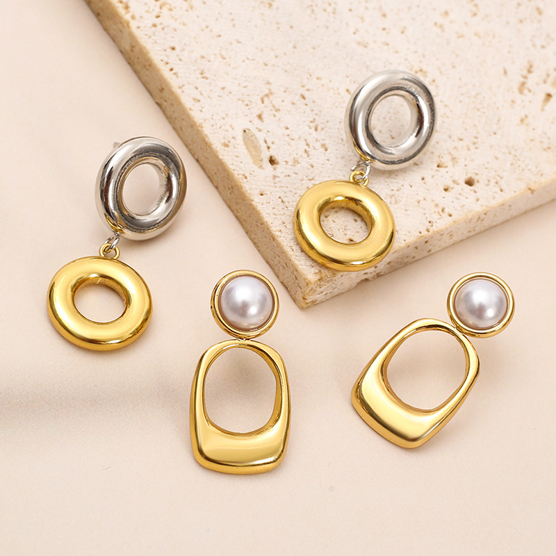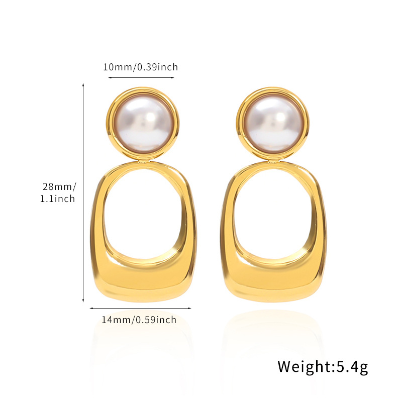304 rustfrit stål Drop Earring, med Plastic Pearl, Geometrisk mønster, forskellige stilarter for valg & for kvinde & hule, Solgt af par