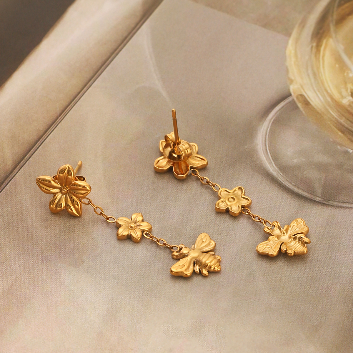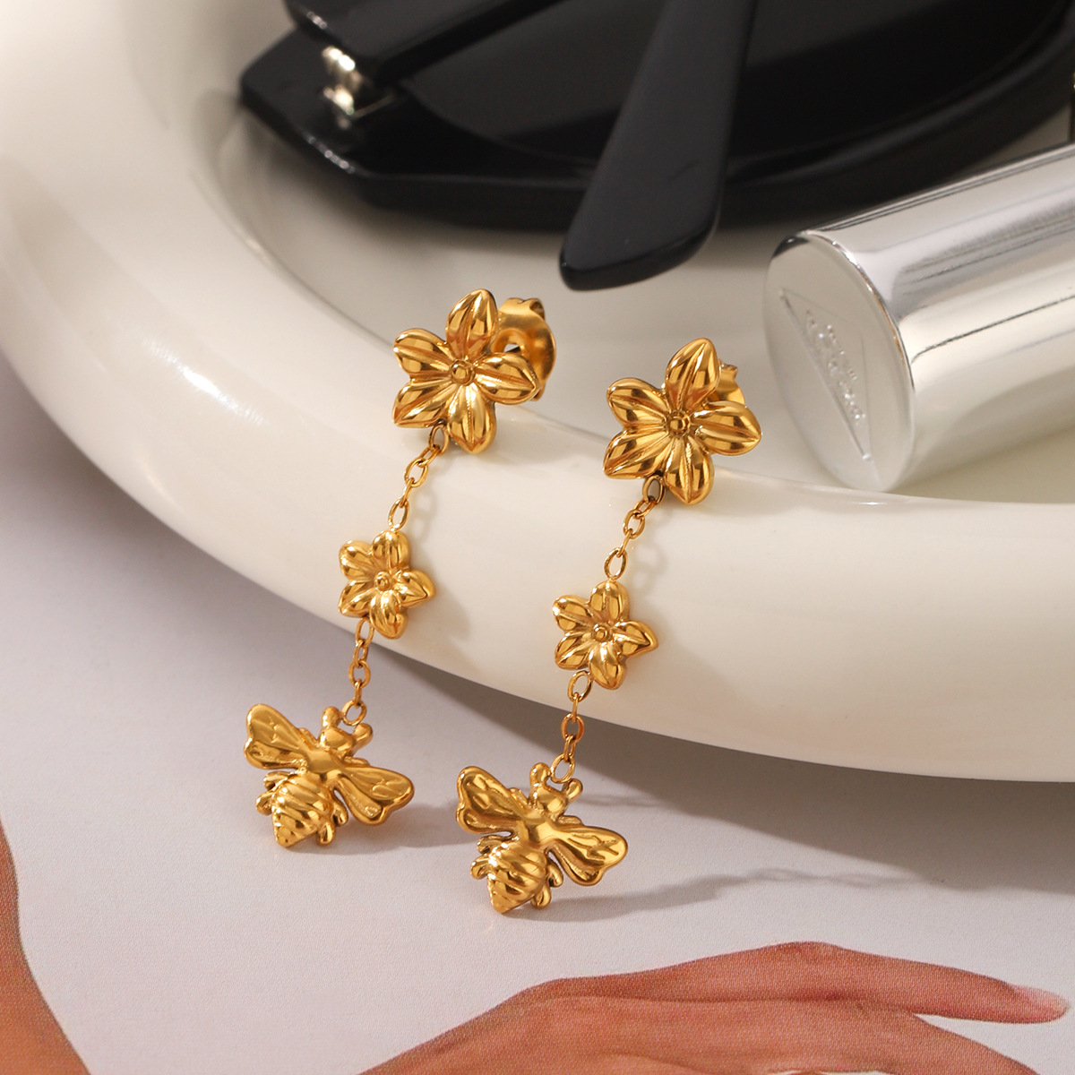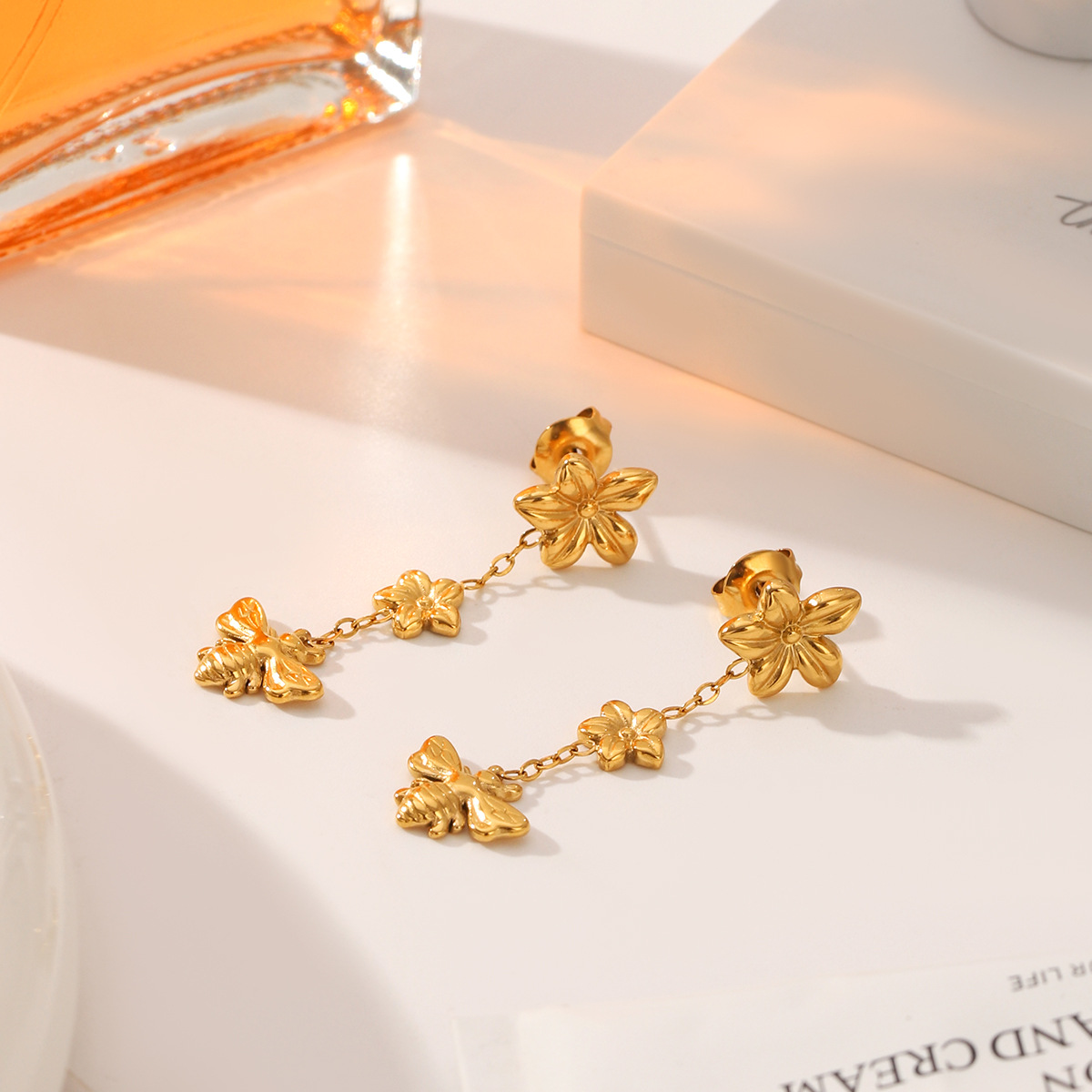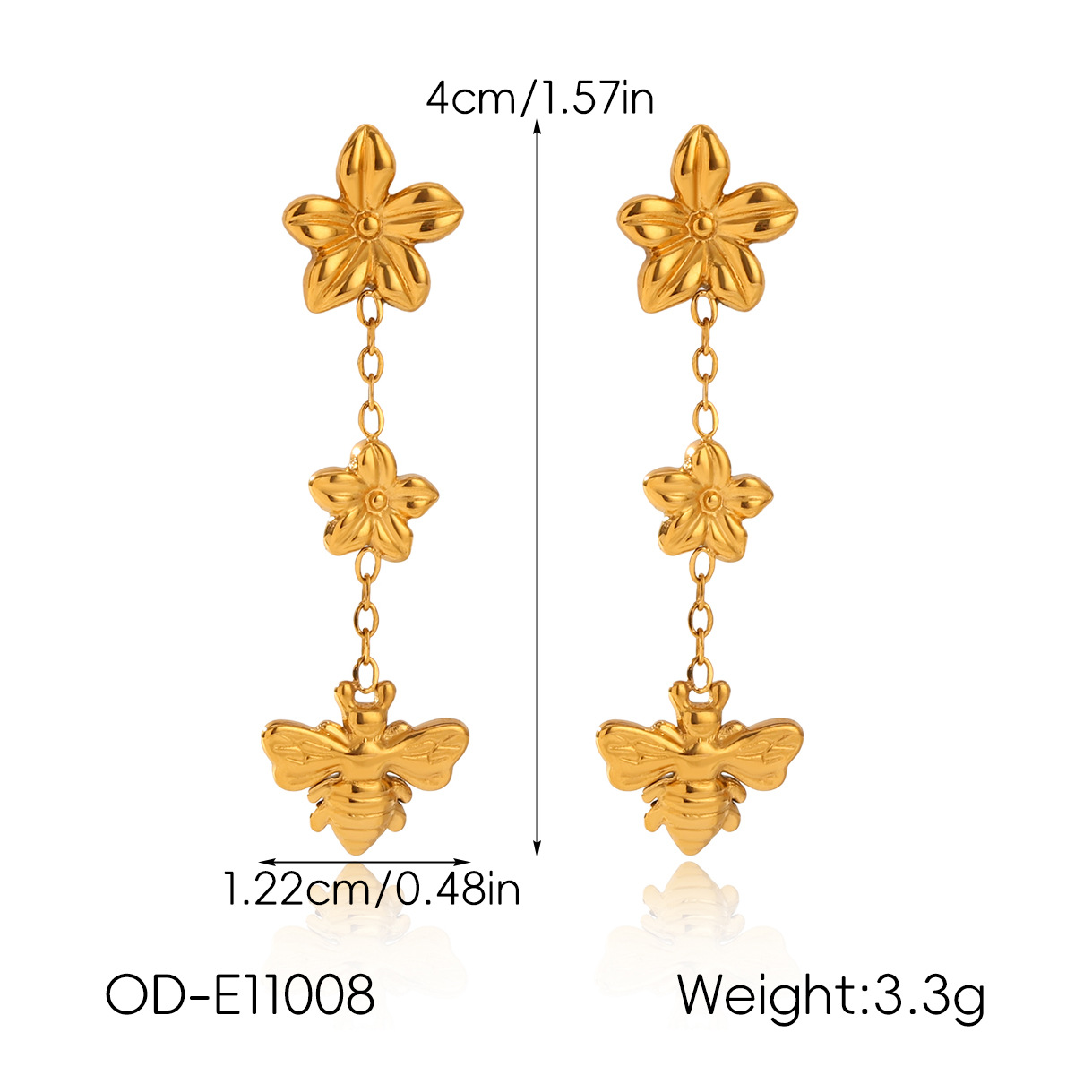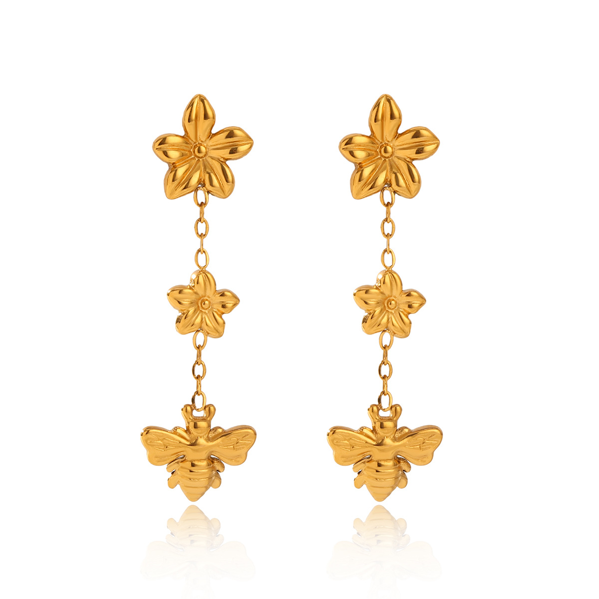 304 rustfrit stål Drop Earring, Bee, guldfarve belagt, mode smykker & for kvinde, 12.20x40mm, Solgt af par