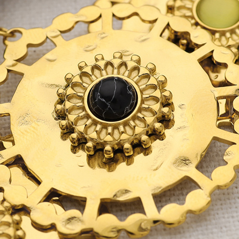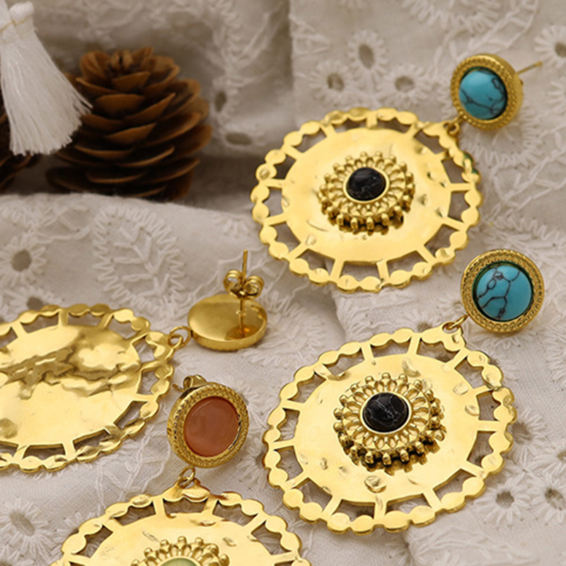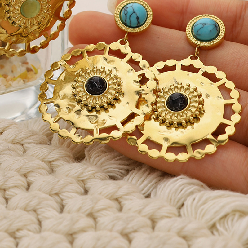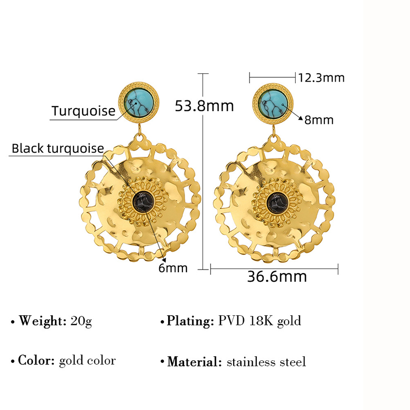 304 rustfrit stål Drop Earring, med turkis, Geometrisk mønster, guldfarve belagt, for kvinde & hule, 36.60x53.80mm, Solgt af par