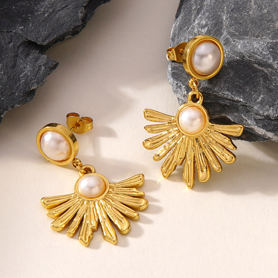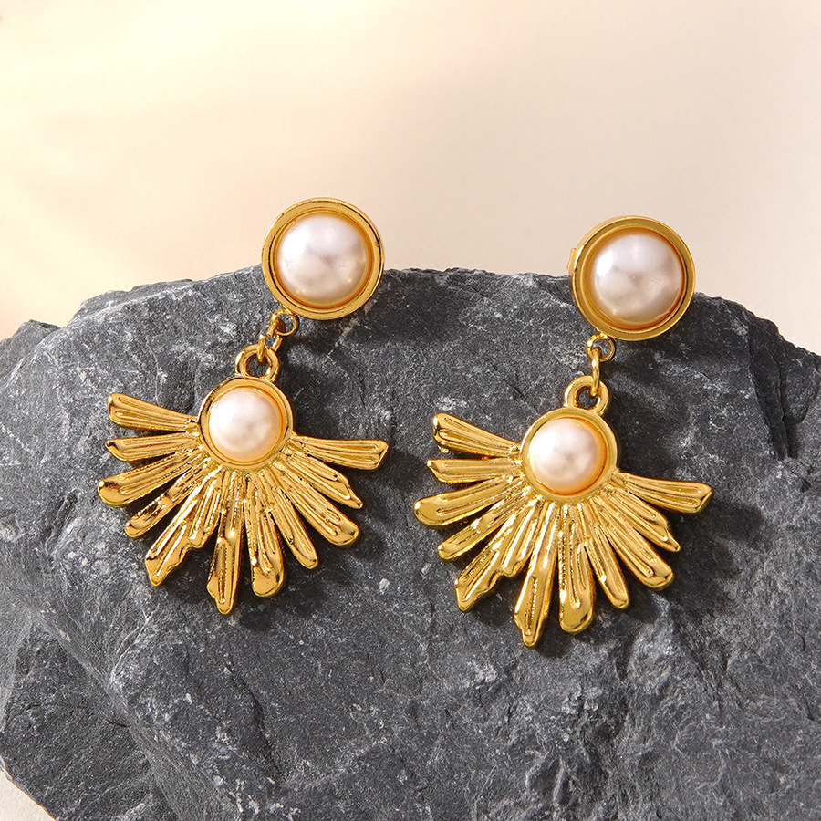 304 rustfrit stål Drop Earring, med Plastic Pearl, Flower, guldfarve belagt, mode smykker & for kvinde, Solgt af par