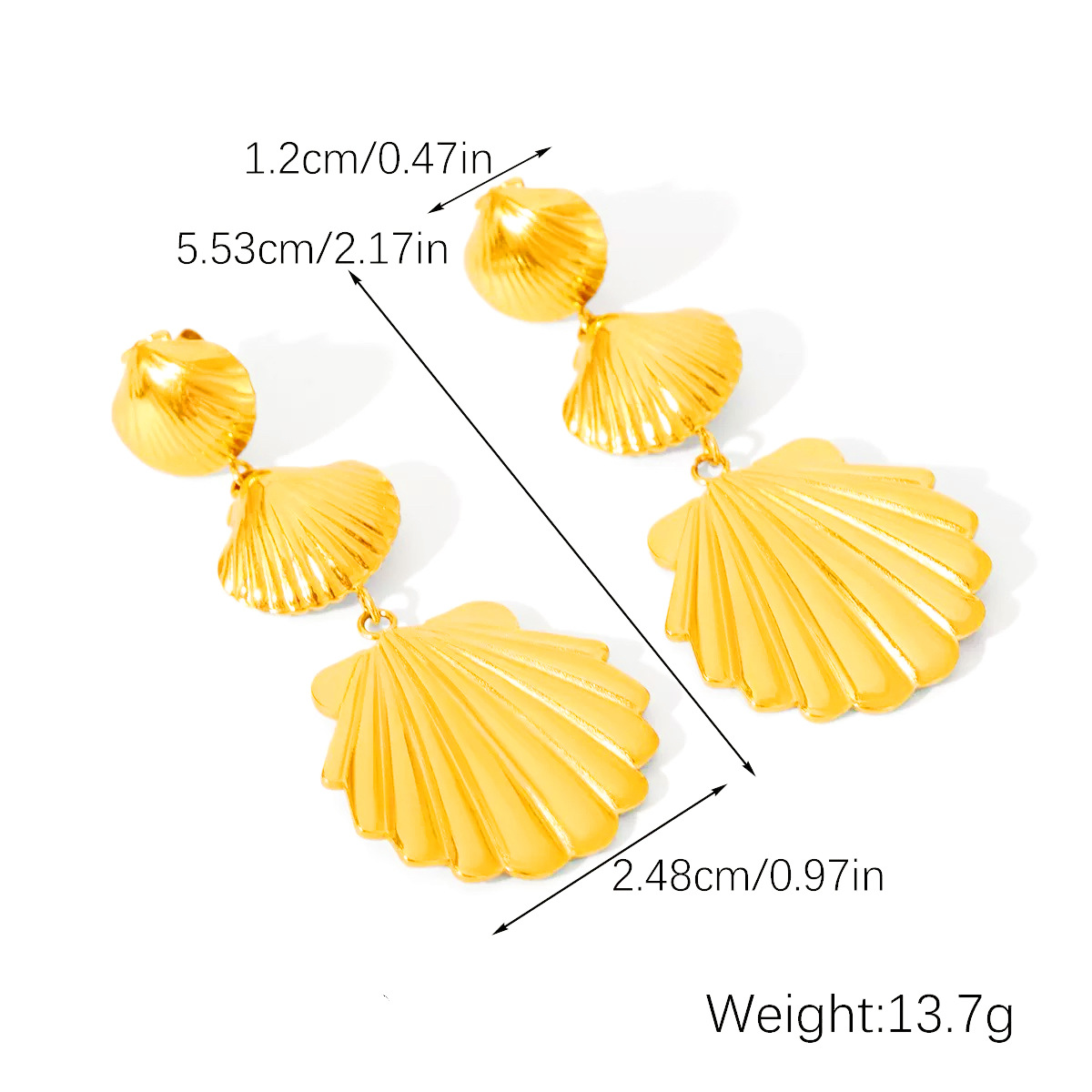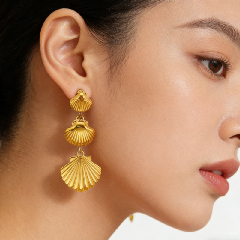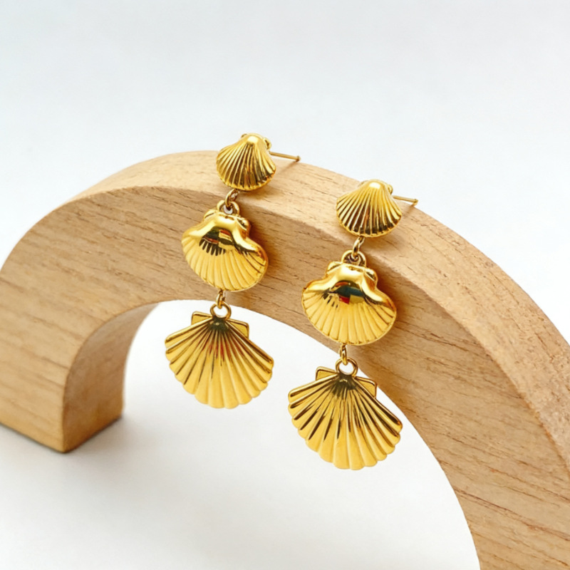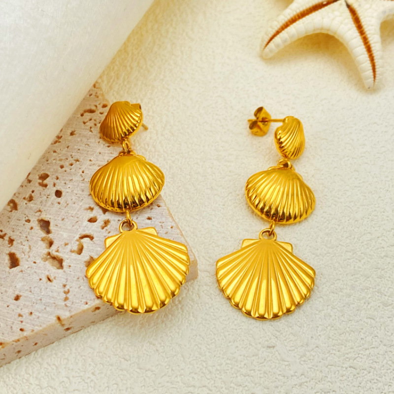 304 rustfrit stål Drop Earring, Shell, guldfarve belagt, ocean design & for kvinde, 24.80x55.30mm, Solgt af par