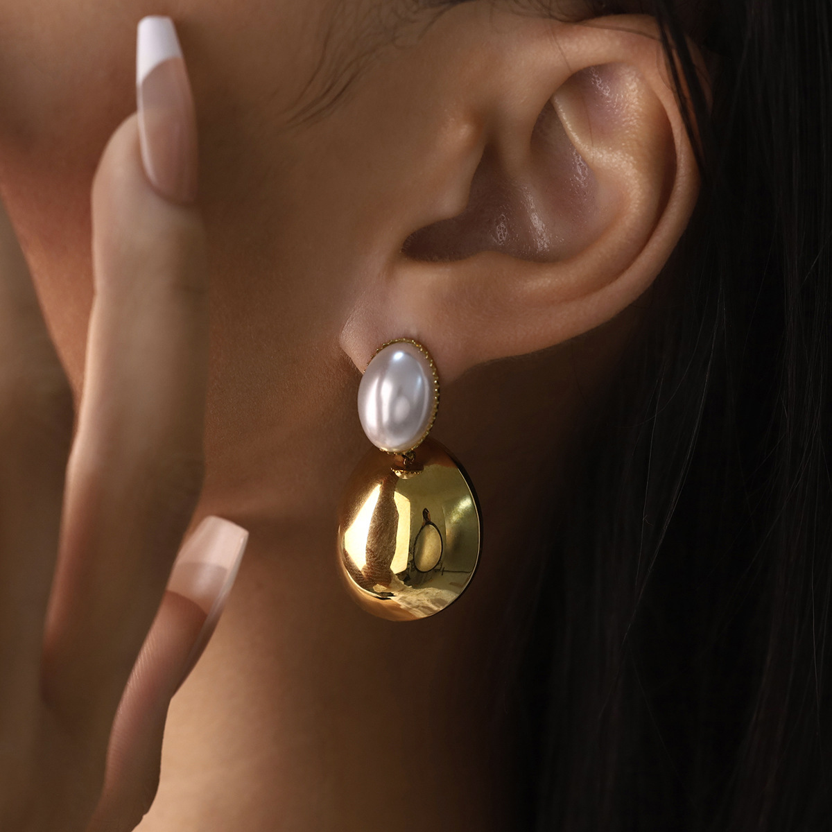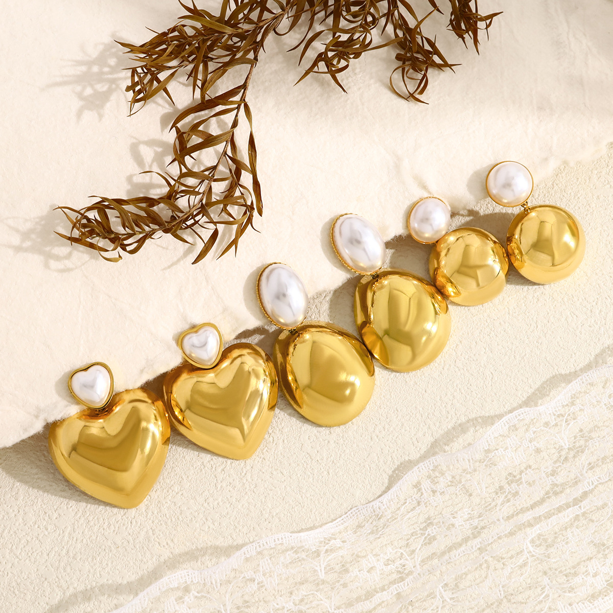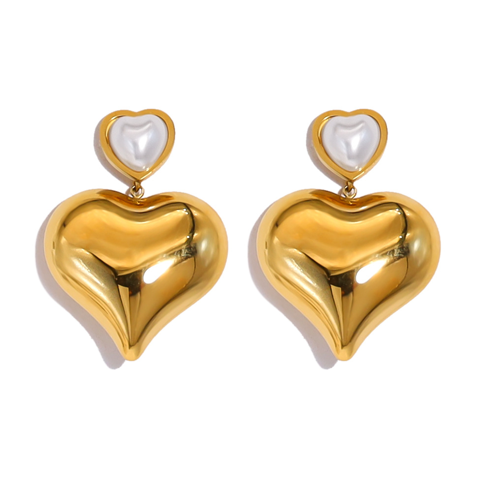 304 rustfrit stål Drop Earring, med Plastic Pearl, guldfarve belagt, forskellige stilarter for valg & for kvinde, Solgt af par
