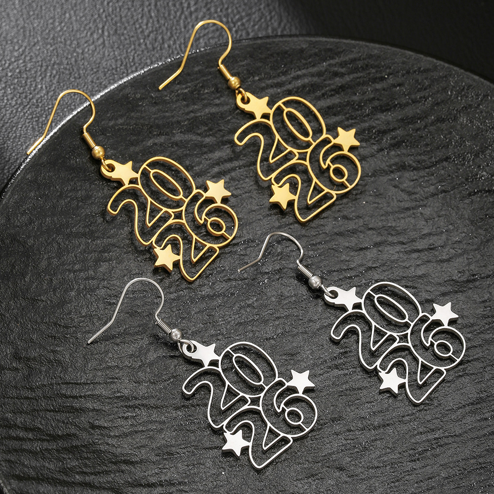 304 rustfrit stål Drop Earring, Nummer, for kvinde & hule, flere farver til valg, 25x28mm, Solgt af par