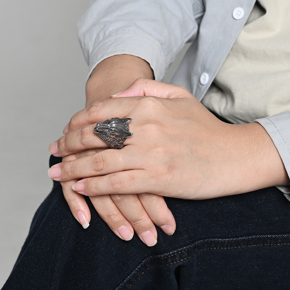 304 rustfrit stål Fingerring, Wolf, forgyldt, forskellig størrelse for valg & for mennesket, flere farver til valg, Størrelse:8-12, Solgt af PC