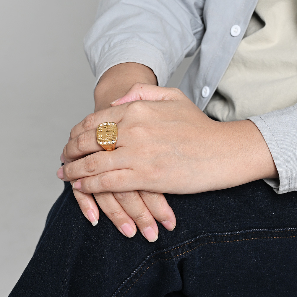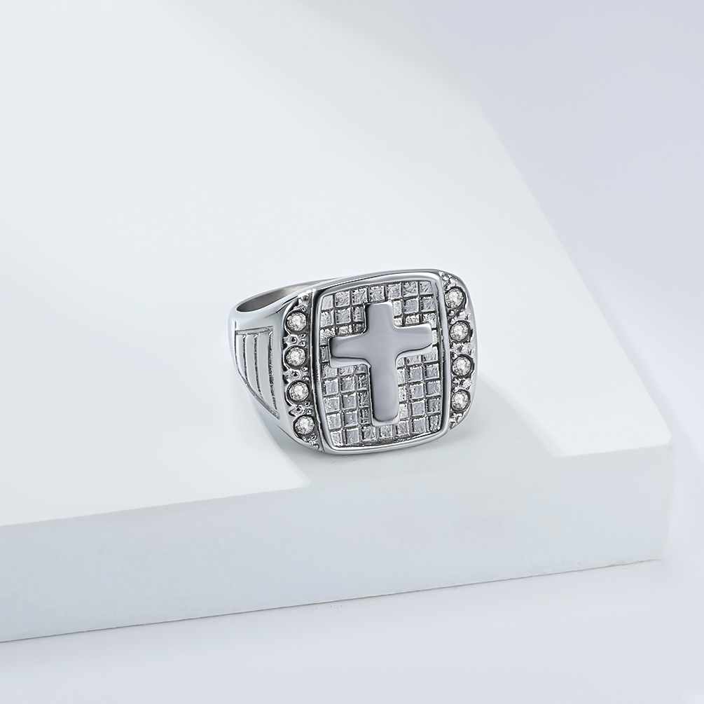 304 rustfrit stål Fingerring, Kryds, forgyldt, forskellig størrelse for valg & for mennesket & med rhinestone, flere farver til valg, Størrelse:7-13, Solgt af PC