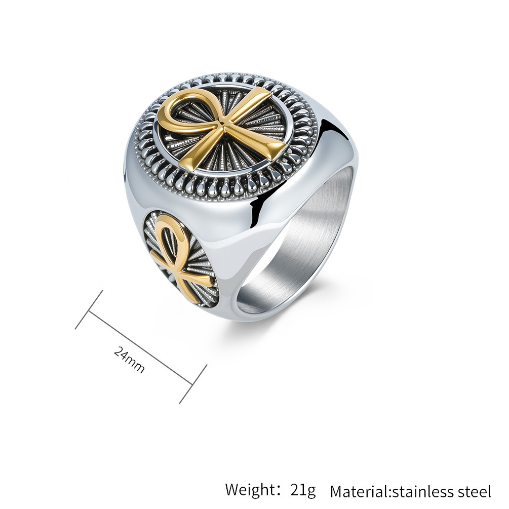 304 rustfrit stål Fingerring, Kryds, forgyldt, forskellig størrelse for valg & for mennesket, flere farver til valg, Størrelse:7-13, Solgt af PC