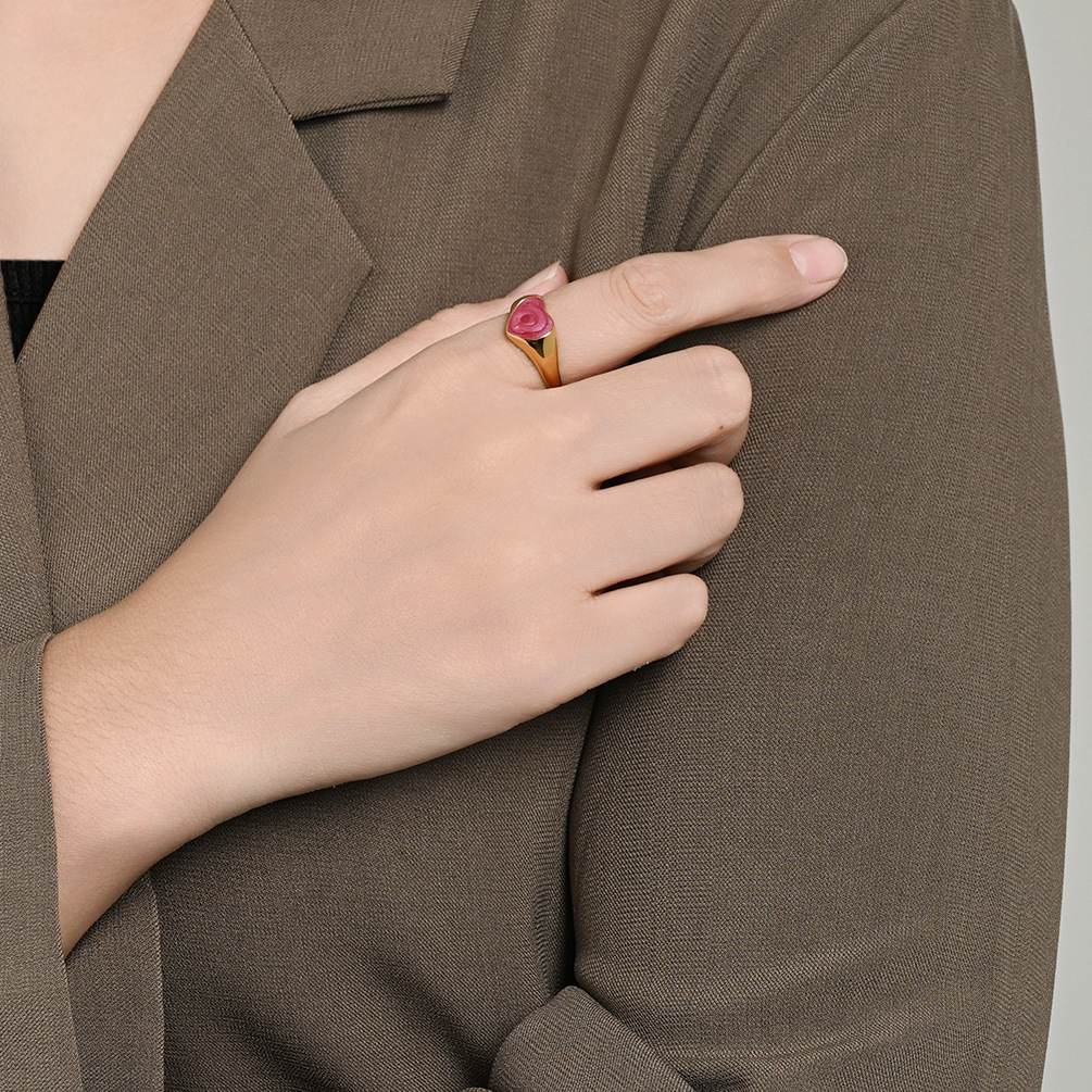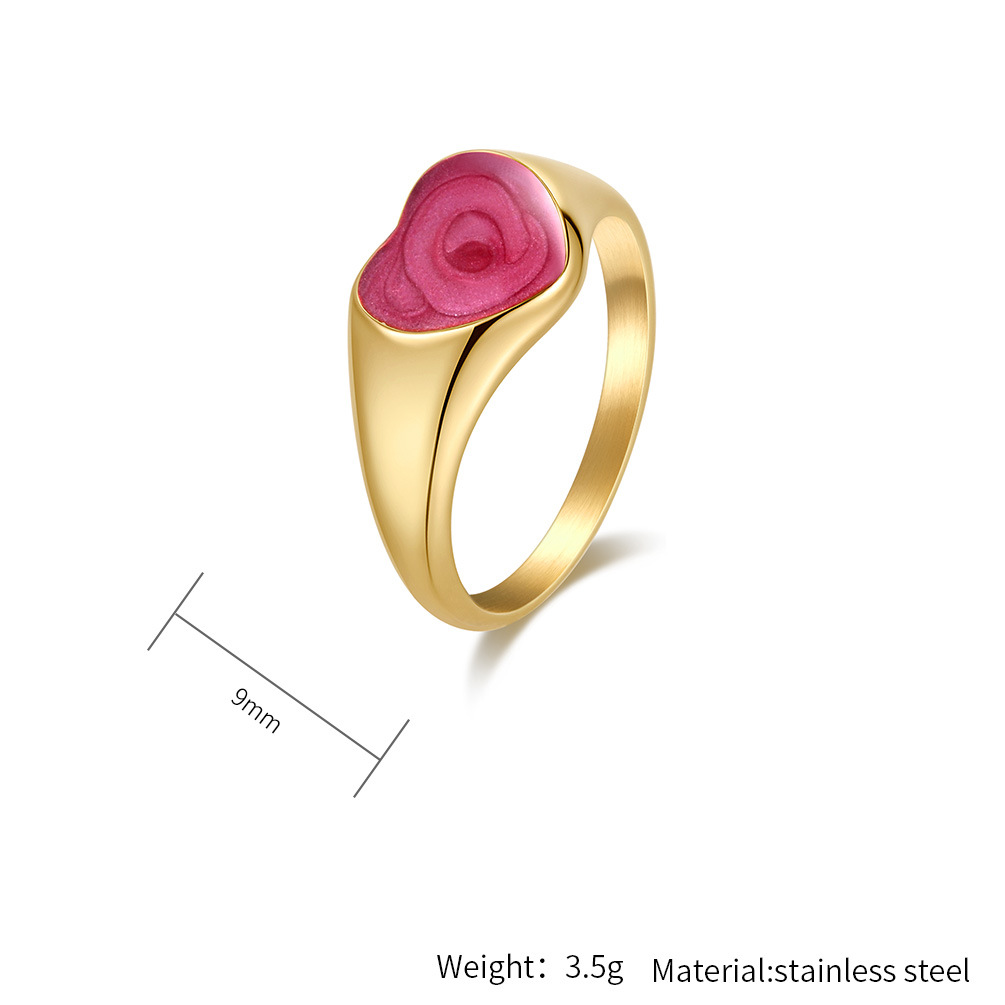 304 rustfrit stål Fingerring, Heart, guldfarve belagt, forskellig størrelse for valg & for kvinde & emalje, flere farver til valg, Størrelse:5-9, Solgt af PC