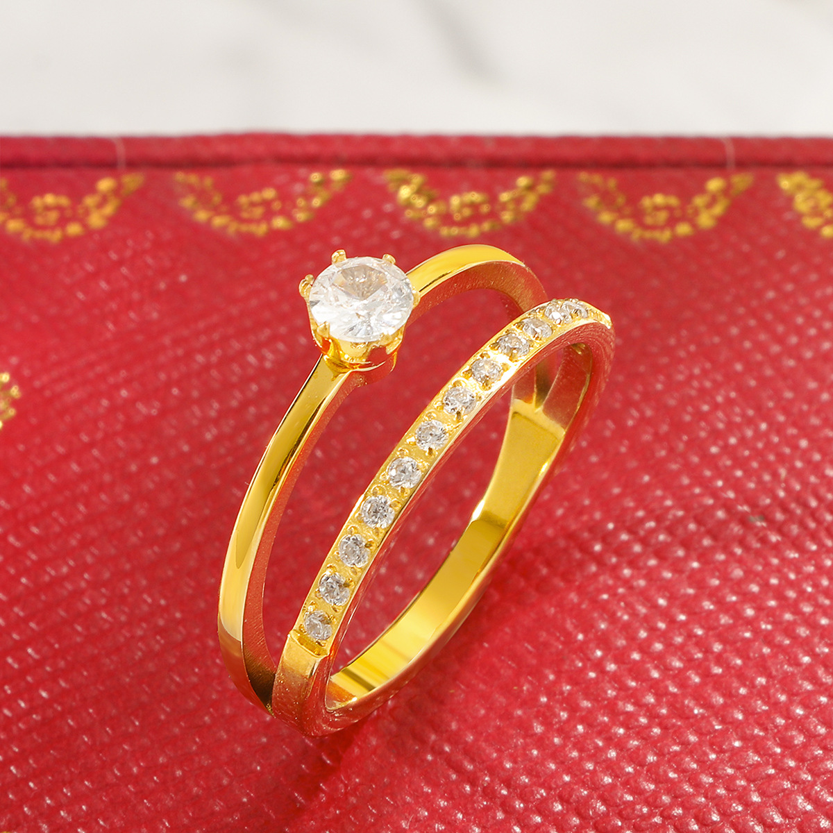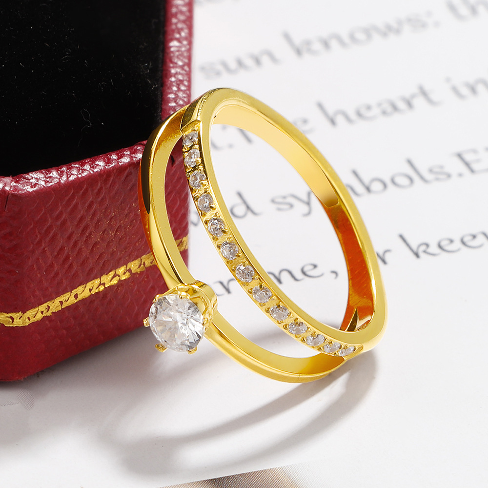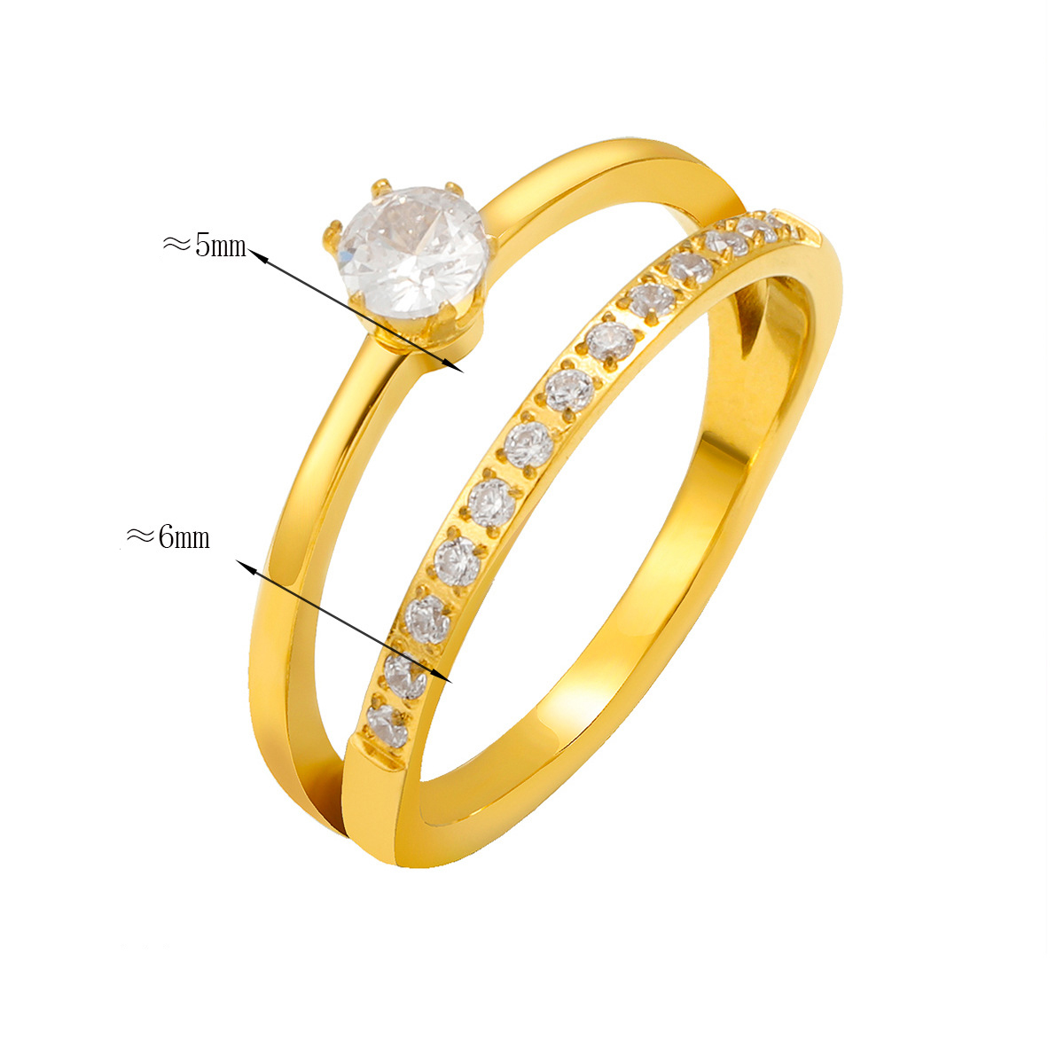 Cubic Zirconia rustfrit stål fingre Ringe, 304 rustfrit stål, guldfarve belagt, mode smykker & Micro Pave cubic zirconia, flere farver til valg, Solgt af PC