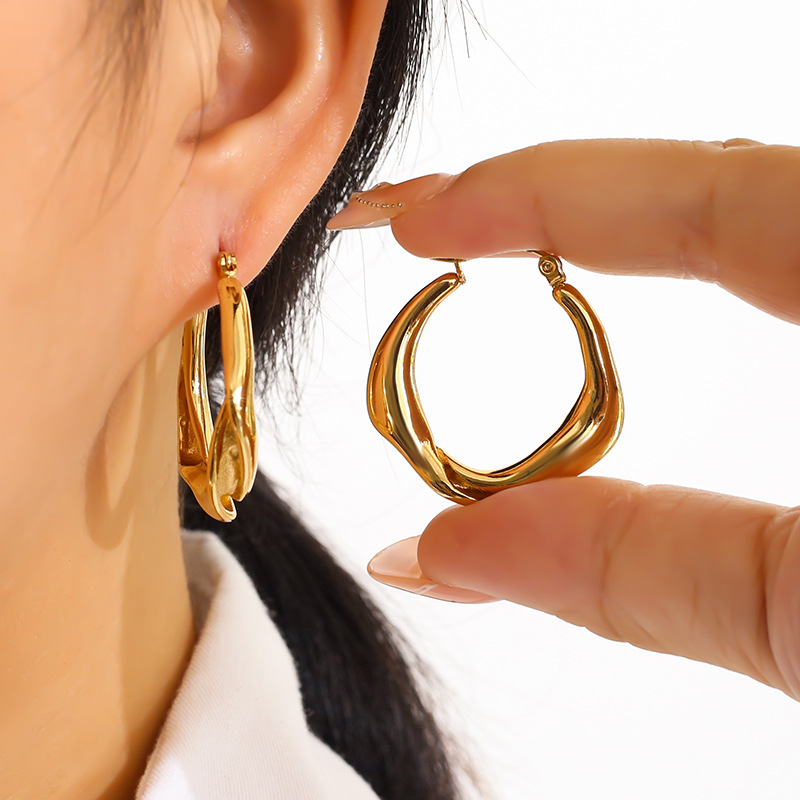 304 rustfrit stål Håndtaget tilbage Earring, guldfarve belagt, mode smykker & for kvinde, 31x32mm, Solgt af par