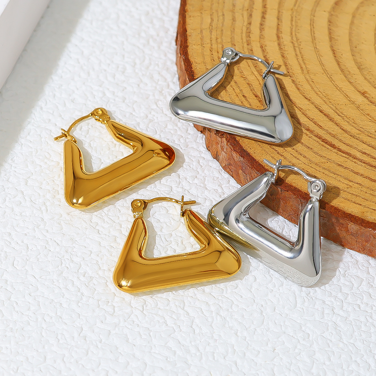 304 rustfrit stål Håndtaget tilbage Earring, Triangle, mode smykker & for kvinde, flere farver til valg, 22.80x18.80mm, Solgt af par
