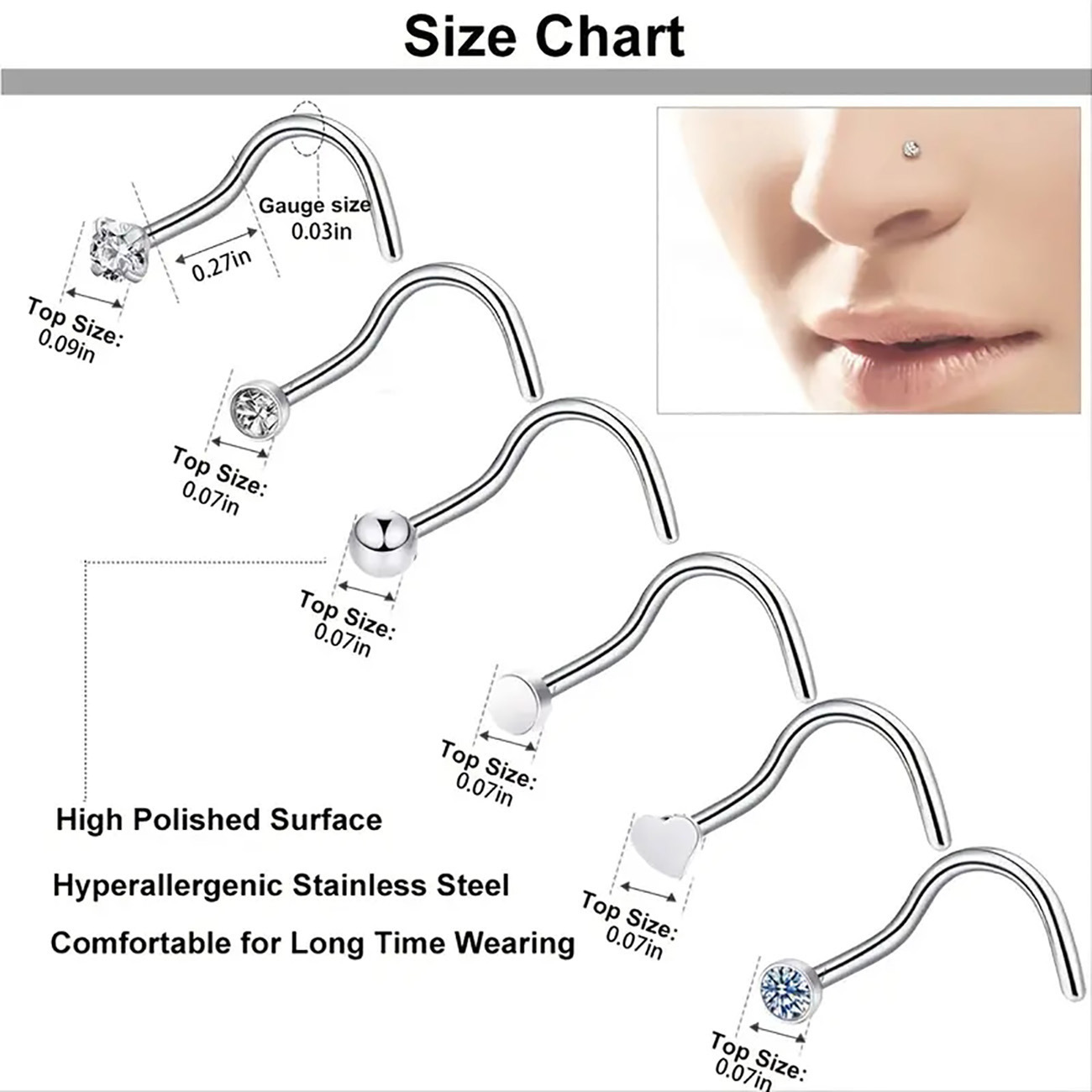 304 rustfrit stål Næse Piercing Smykker, mode smykker & Unisex, oprindelige farve, 40pc'er/sæt, Solgt af sæt