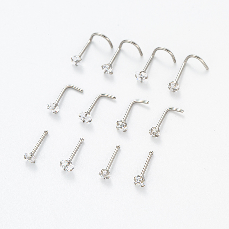 304 rustfrit stål Næse Piercing Smykker, Unisex & forskellige stilarter for valg & Micro Pave cubic zirconia, Tilfældig farve, Solgt af PC