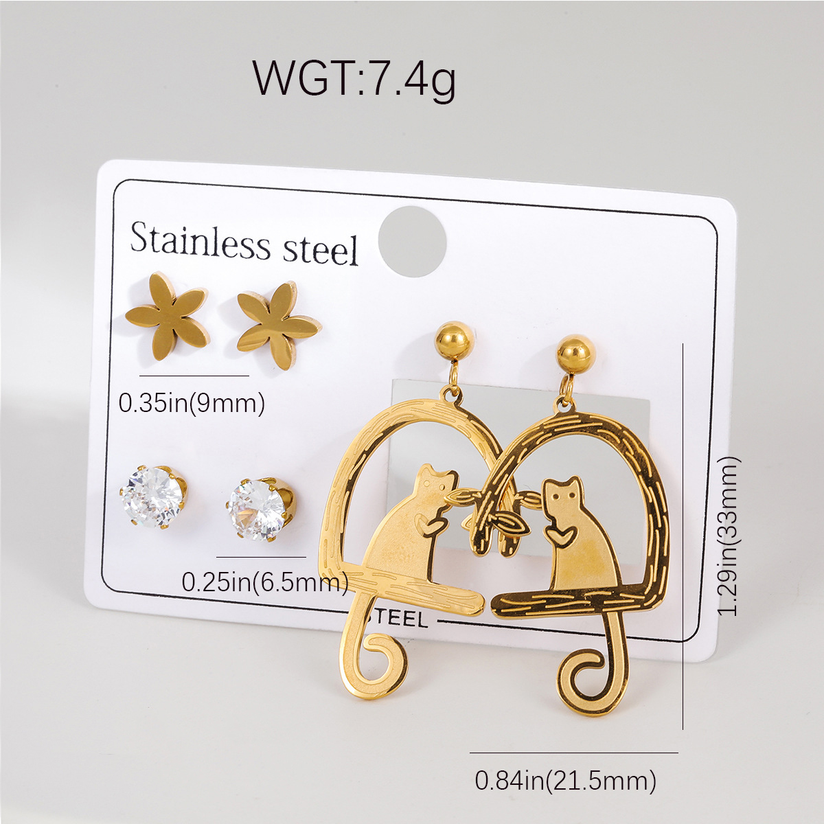 Stainless Steel Stud Øreringe, 304 rustfrit stål, forgyldt, mode smykker & forskellige stilarter for valg & for kvinde, flere farver til valg, Solgt af par