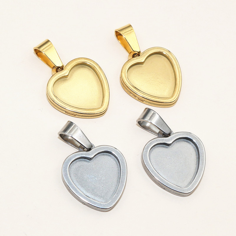 304 rustfrit stål Pendant Setting, Heart, forgyldt, du kan DIY, flere farver til valg, 12mm, Solgt af PC