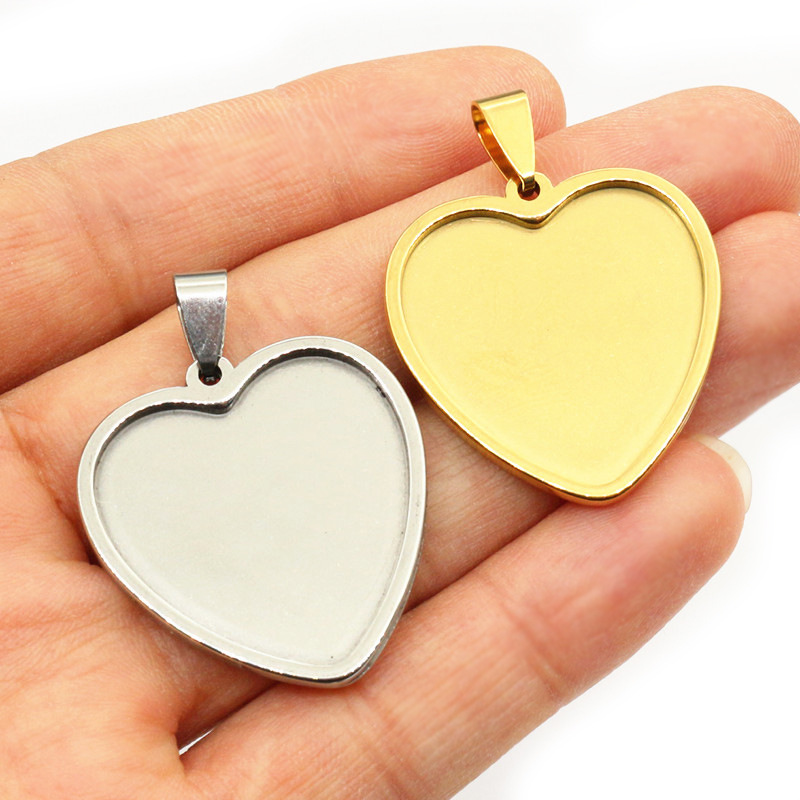 304 rustfrit stål Pendant Setting, Heart, forgyldt, du kan DIY, flere farver til valg, 25mm, Solgt af PC