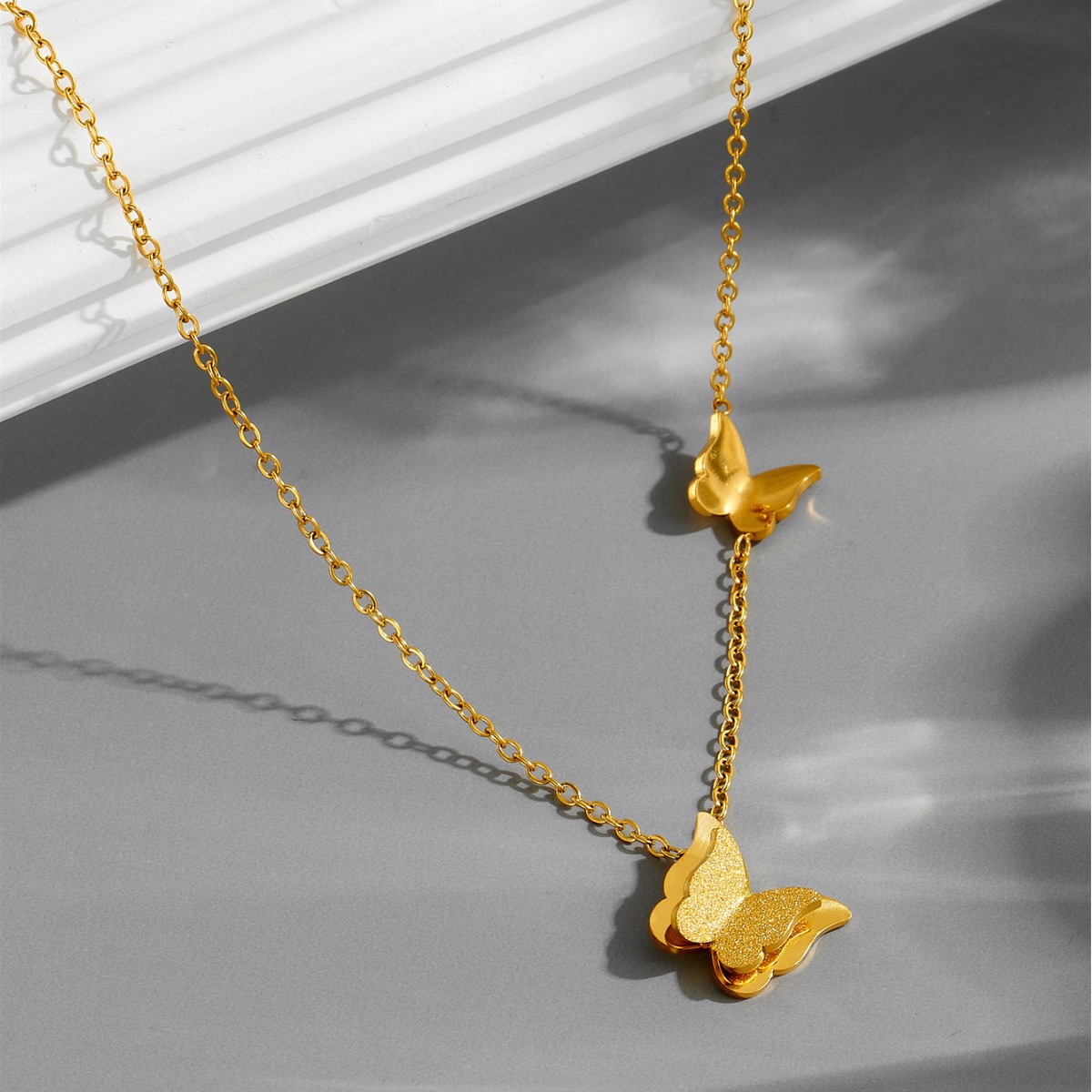1:necklace gold 40cm2:necklace rose gold 40cm3:necklace steel color 40cm4:E002 butterfly earrings gold 10mm5:E002 butterfly earrings rose gold 10mm6:E002 butterfly earrings steel color 10mm7:ring gold8:ring rose gold9:ring steel color
