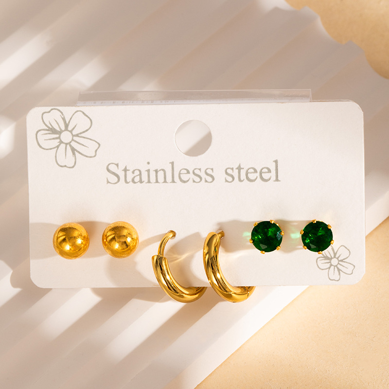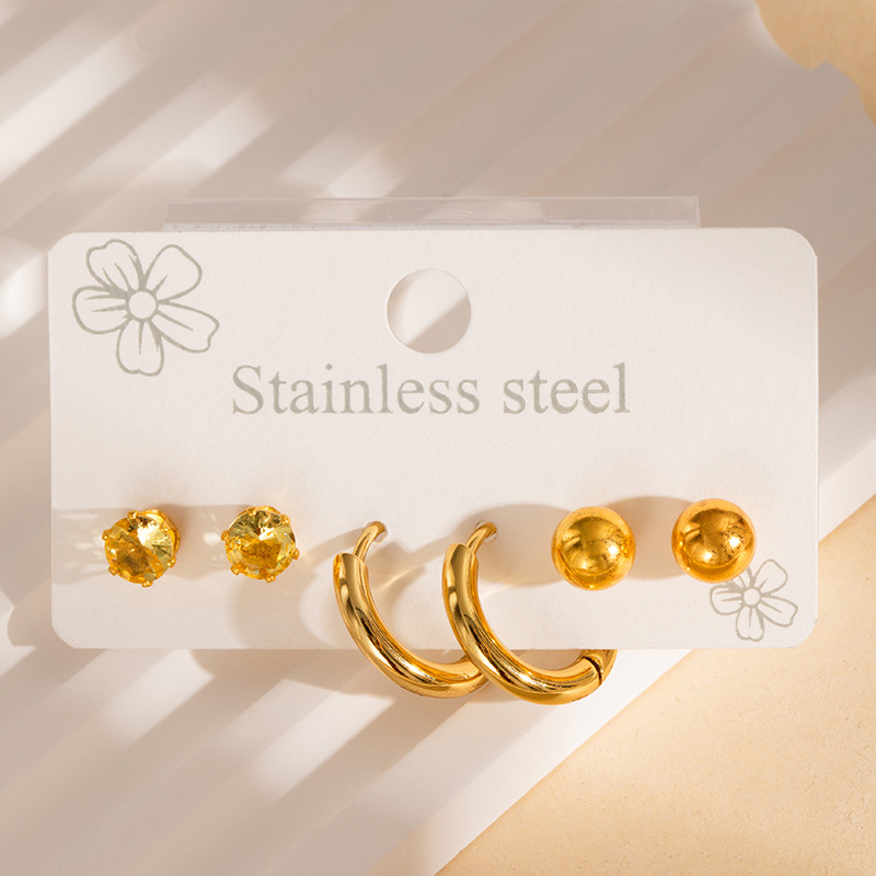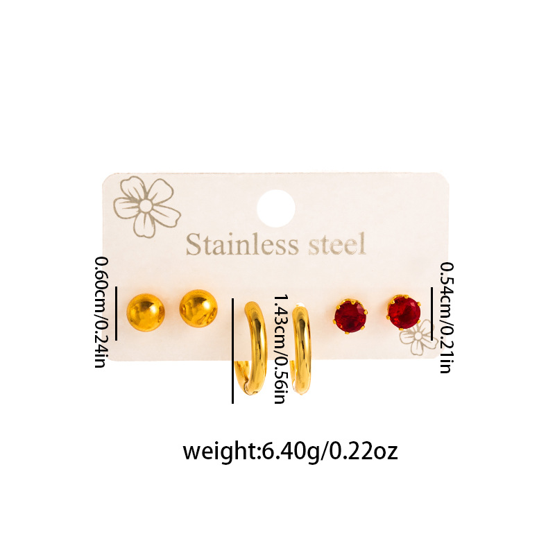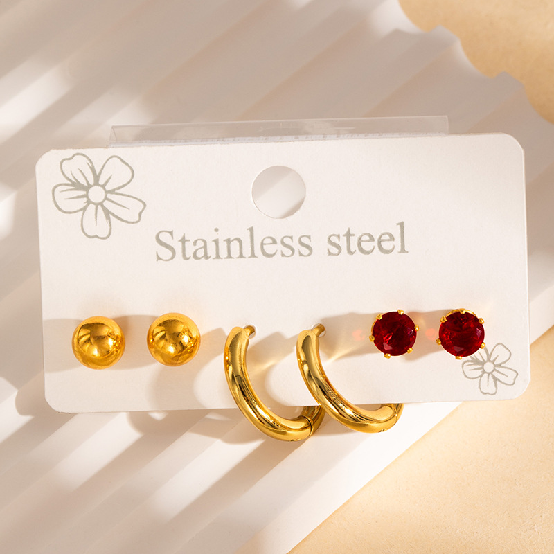 304 rustfrit stål Stud Earring Set, guldfarve belagt, tre stykker & forskellige stilarter for valg & for kvinde & emalje, Solgt af sæt