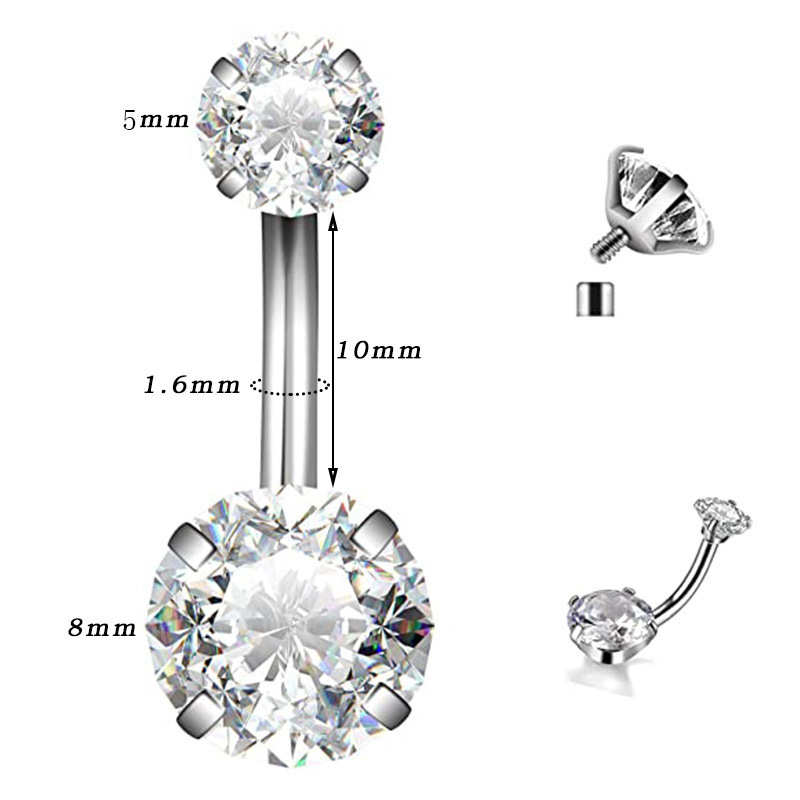 304 rustfrit stål mave ring, Runde, forgyldt, for kvinde & med cubic zirconia, flere farver til valg, Solgt af PC