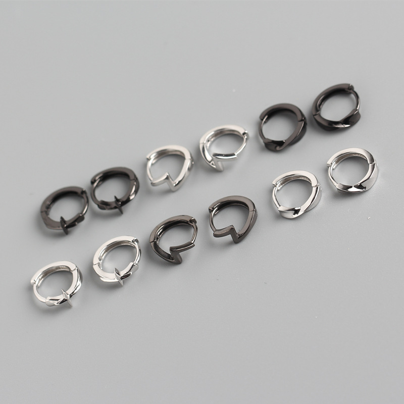 925 Sterling Sølv Huggie Hoop Øreringe, Unisex & forskellige stilarter for valg, Indvendig diameter:Ca. 9mm, Solgt af par