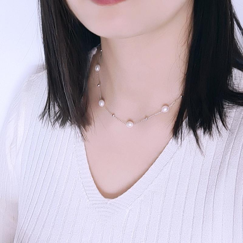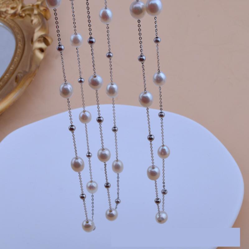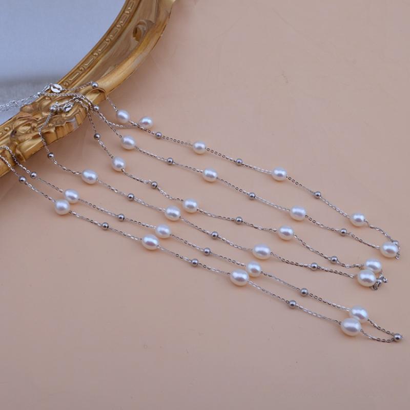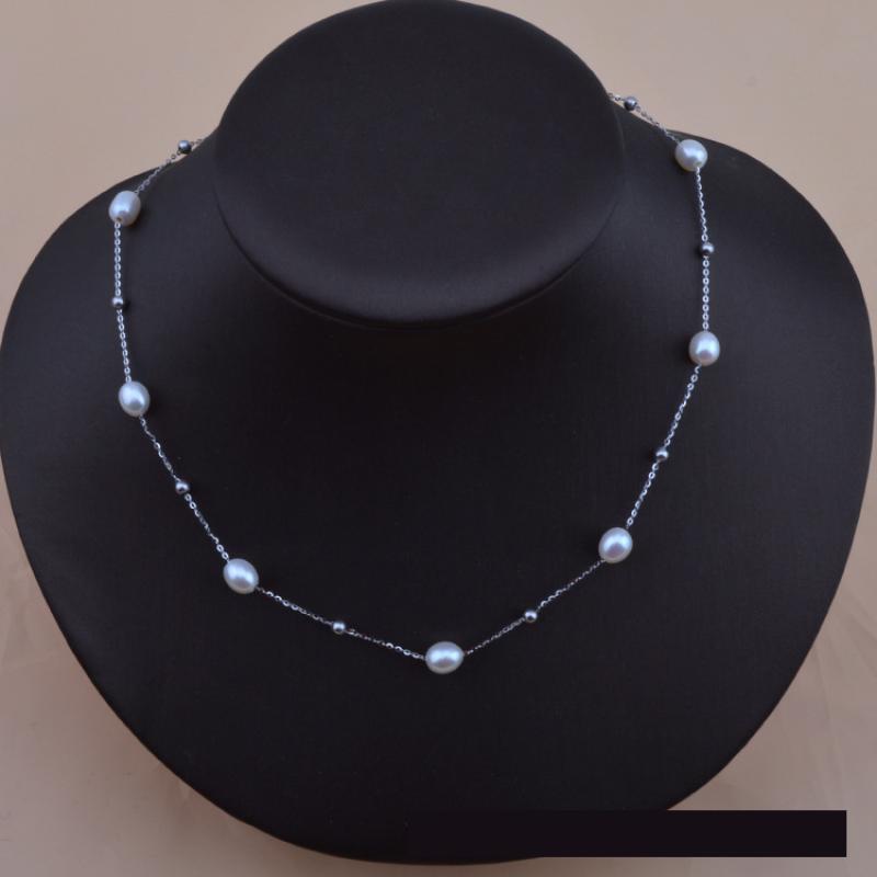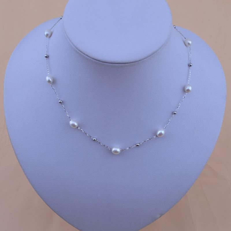 925 Sterling Sølv Perle halskæde, med Ferskvandsperle, Ris, sølvfarvet forgyldt, mode smykker, hvid, 4x7mm, Solgt af Strand
