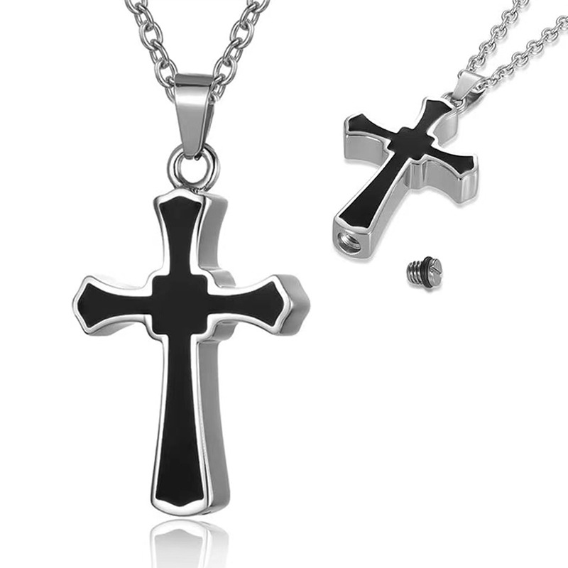 304 rustfrit stål Cinerary kiste halskæde, Kryds, forgyldt, du kan DIY, blandede farver, 25x20x6mm, Solgt af PC