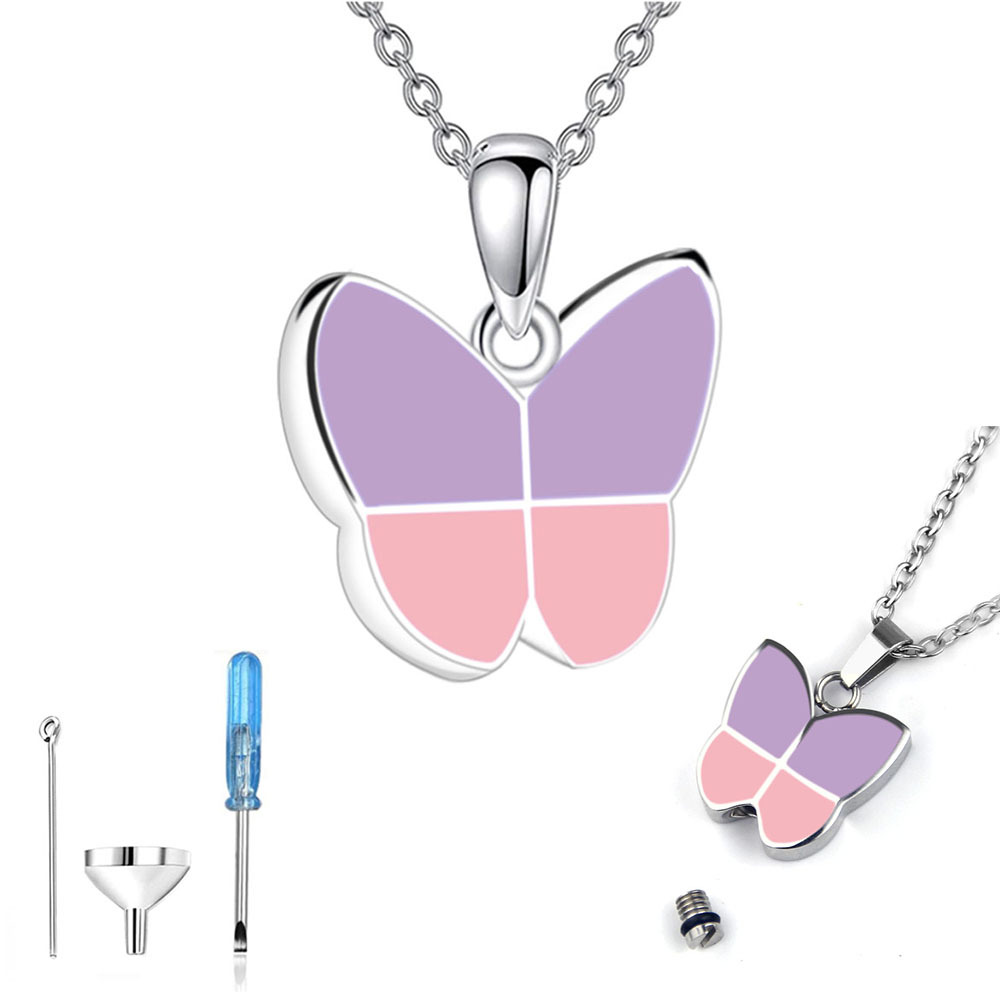 304 rustfrit stål Cinerary kiste vedhæng, Butterfly, forgyldt, du kan DIY & emalje, blandede farver, 15x16mm, Solgt af PC