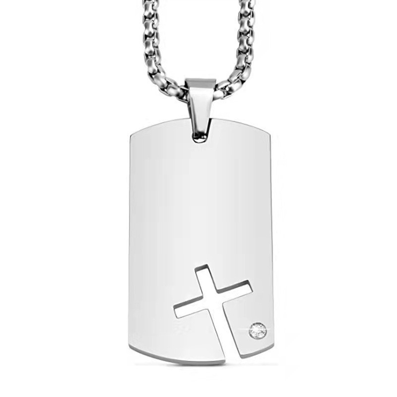 304 rustfrit stål Halskæde, Kryds, forgyldt, for mennesket & med rhinestone, flere farver til valg, Længde Ca. 23.6 inch, Solgt af PC