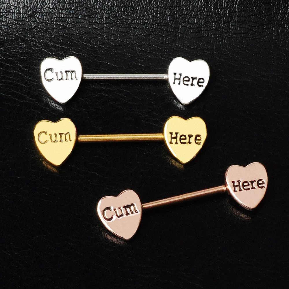 316 Stainless Steel brystvorte ring, Heart, forgyldt, Unisex & forskellige stilarter for valg & med bogstavet mønster, 16x1.60x5mm, Solgt af PC