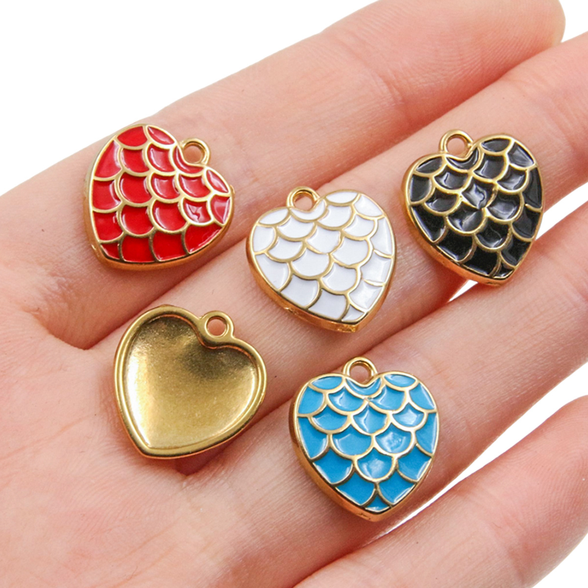 Rustfrit stål Heart Vedhæng, 304 rustfrit stål, du kan DIY & emalje, flere farver til valg, 15x17mm, 10pc'er/Bag, Solgt af Bag