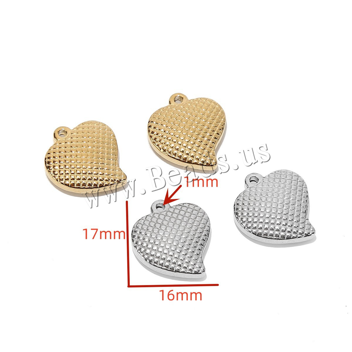 Rustfrit stål Heart Vedhæng, 304 rustfrit stål, forgyldt, du kan DIY, flere farver til valg, 16x17mm, 10pc'er/Bag, Solgt af Bag