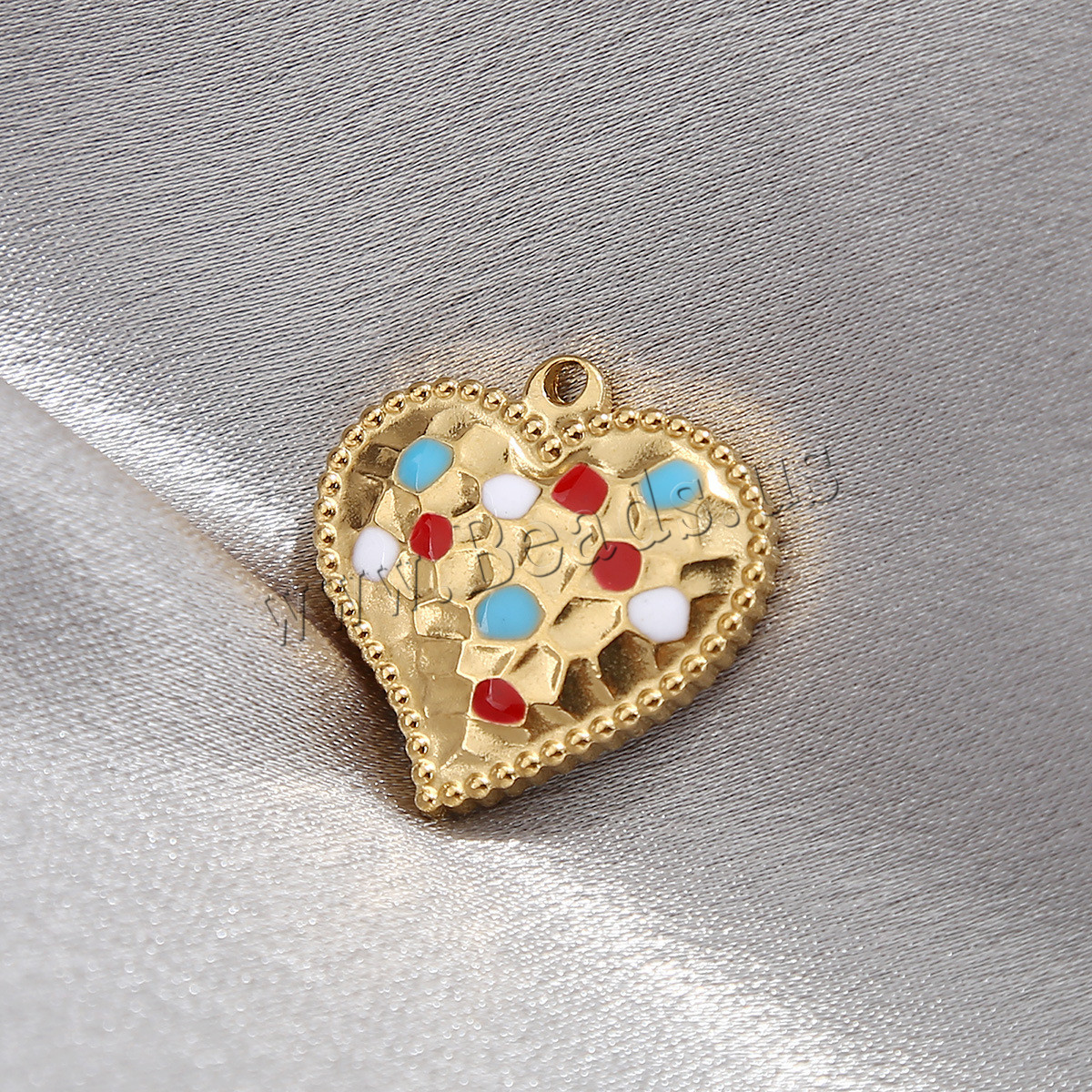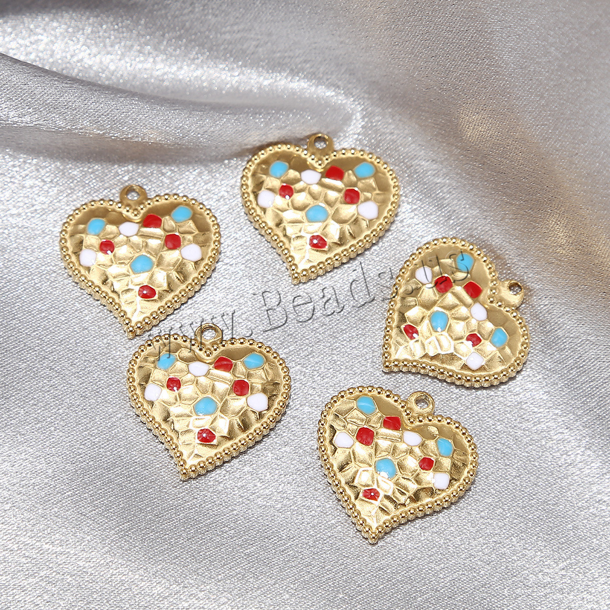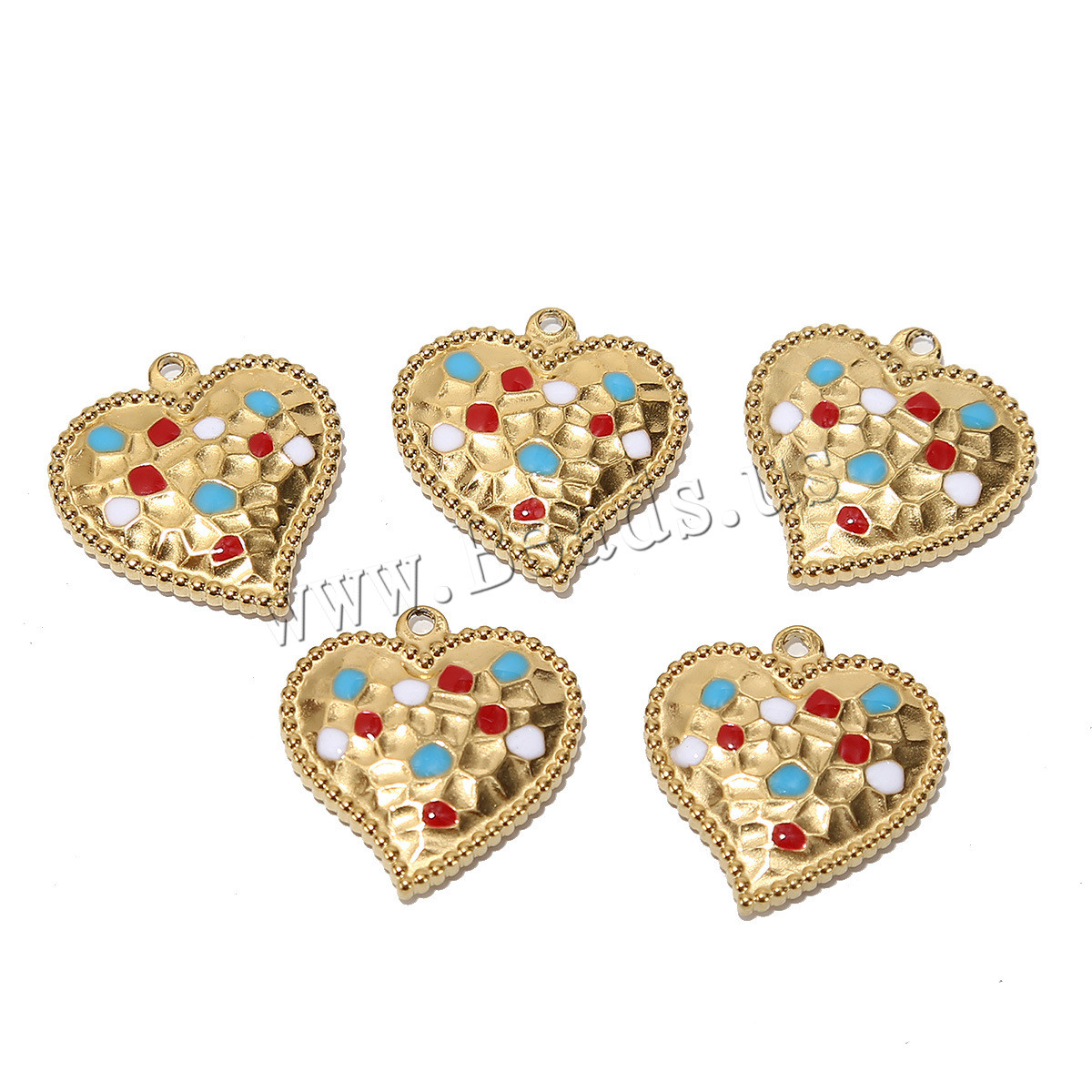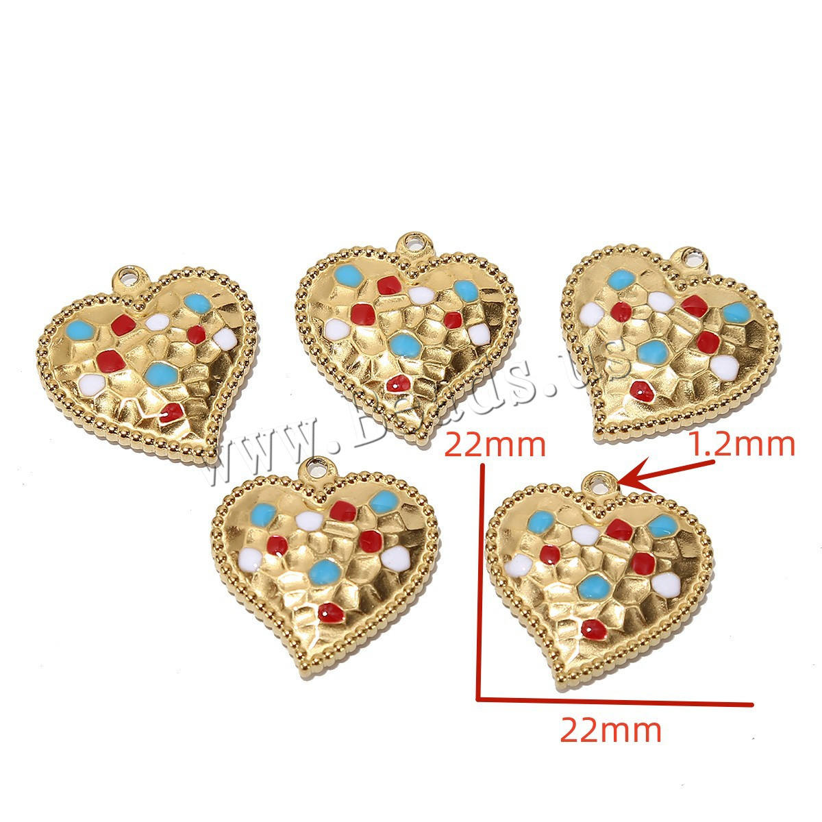 Rustfrit stål Heart Vedhæng, 304 rustfrit stål, forgyldt, du kan DIY & emalje, gylden, 22x22mm, 10pc'er/Bag, Solgt af Bag