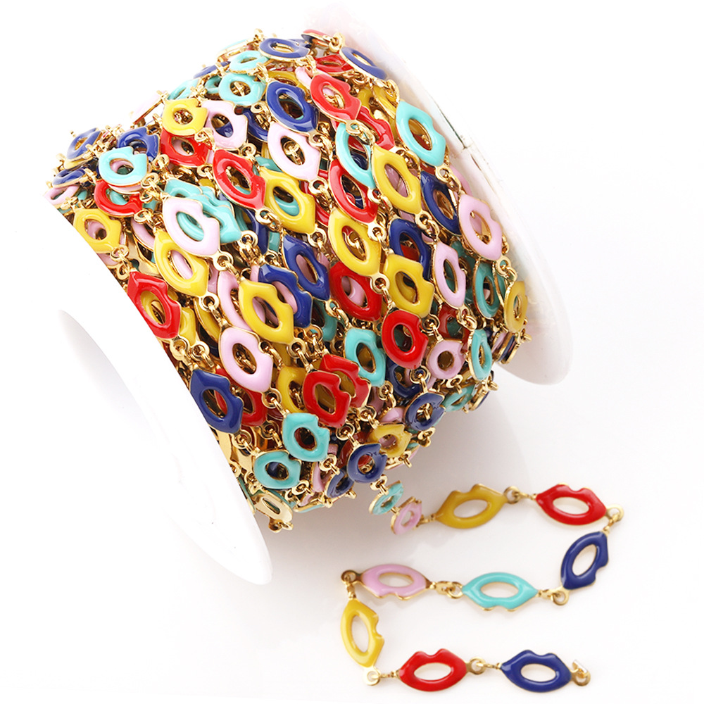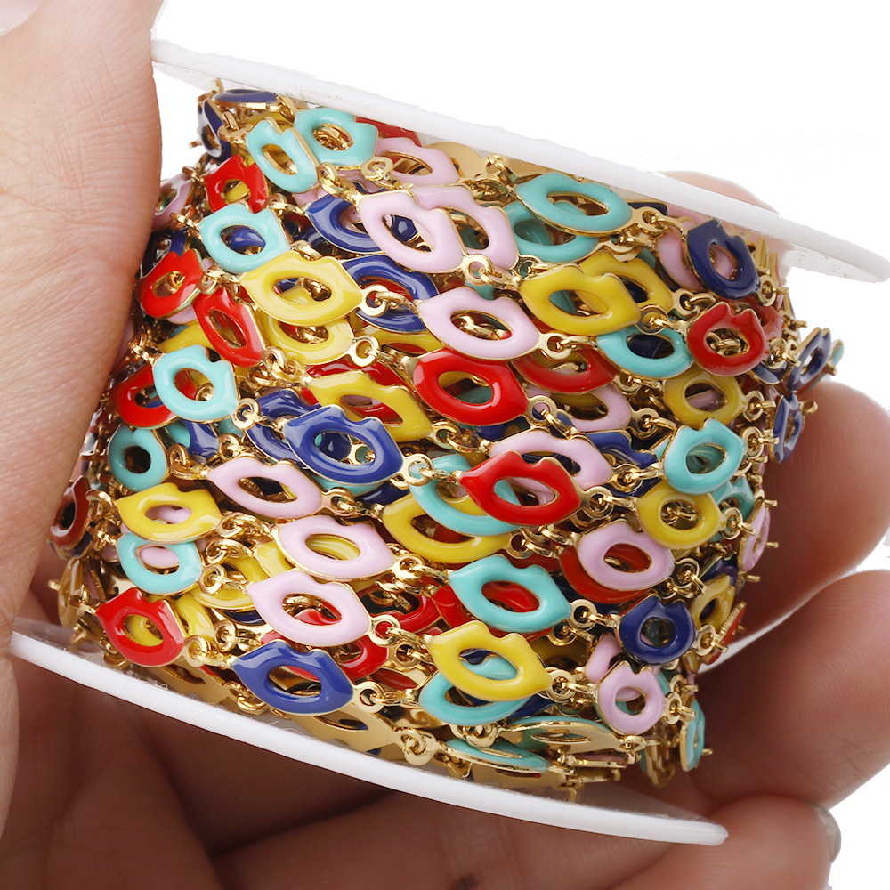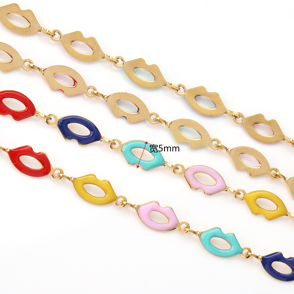 Rustfrit stål smykker kæde, 304 rustfrit stål, Lip, guldfarve belagt, du kan DIY & emalje, blandede farver, 5mm, 2m/Bag, Solgt af Bag