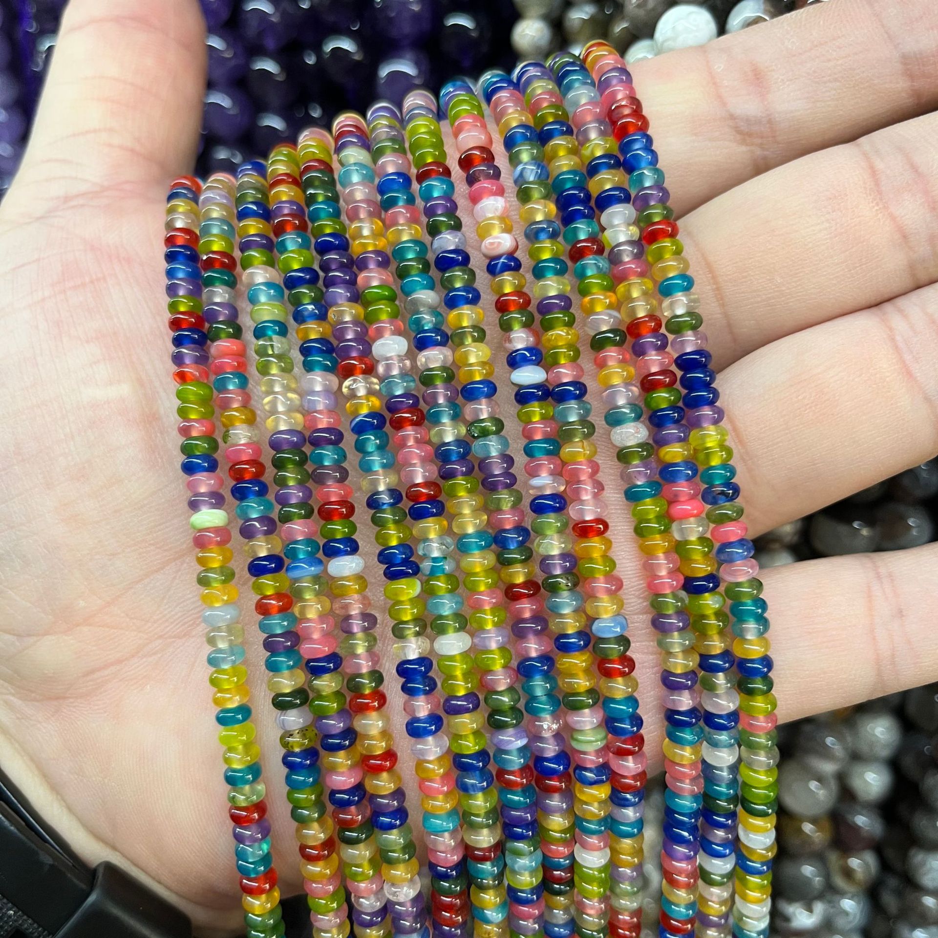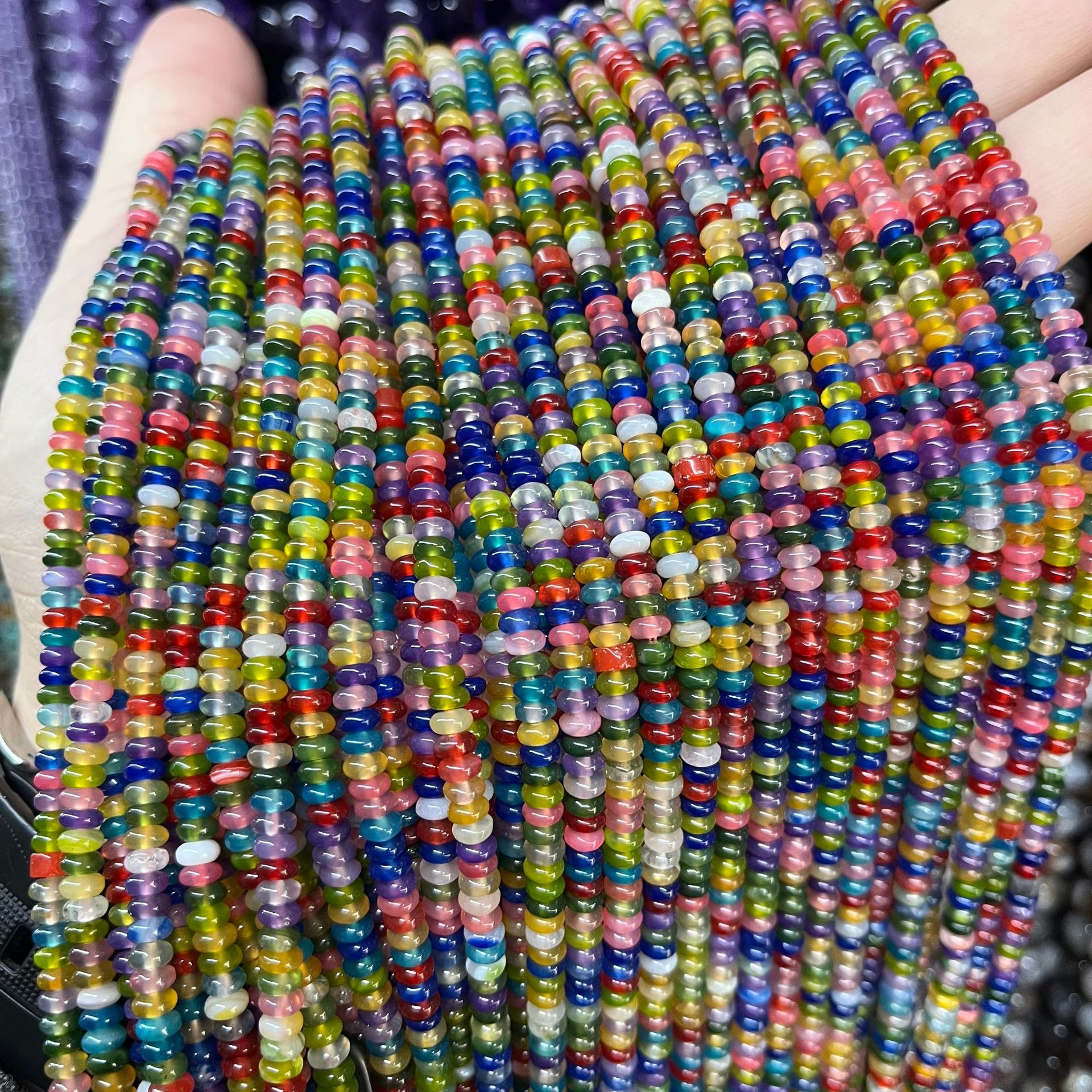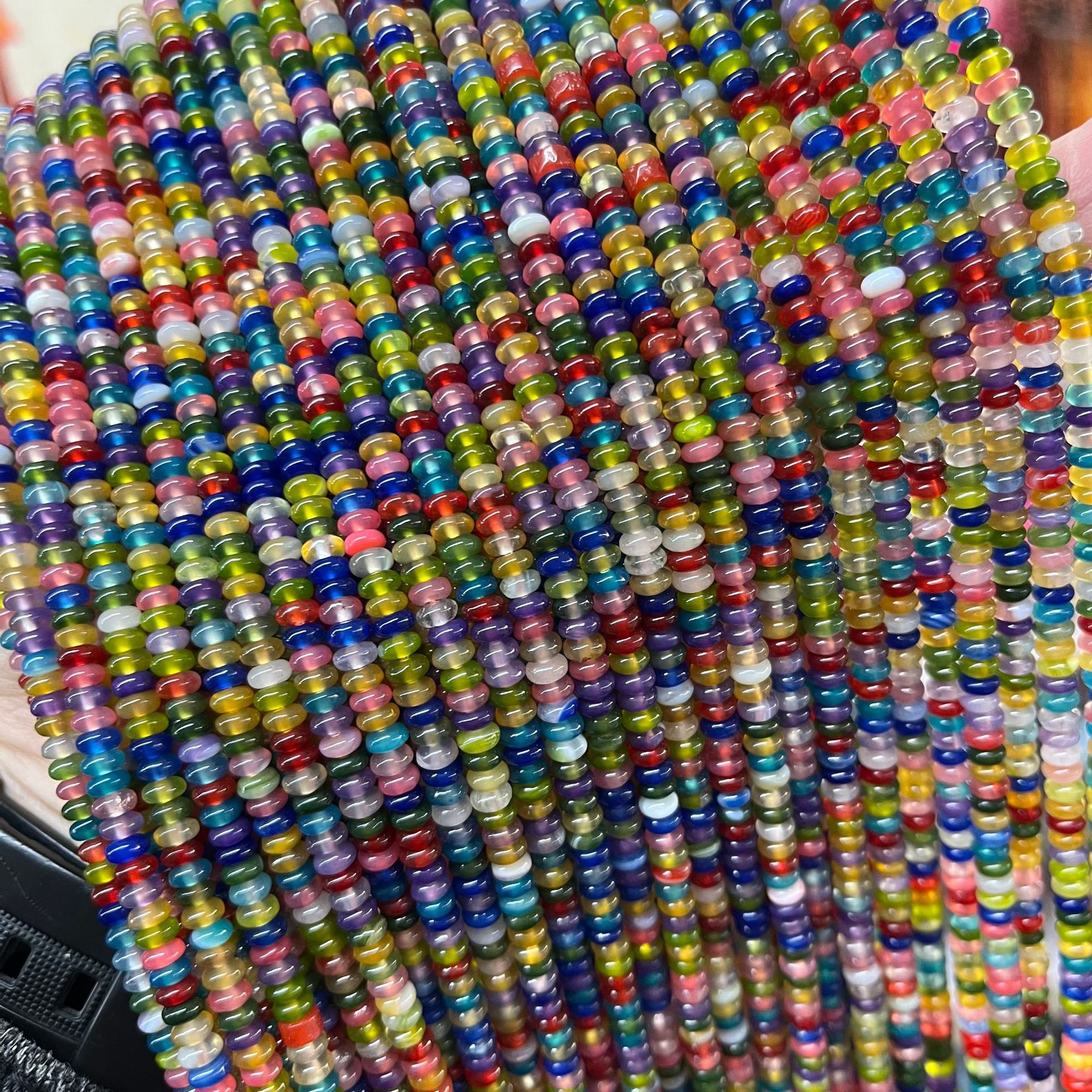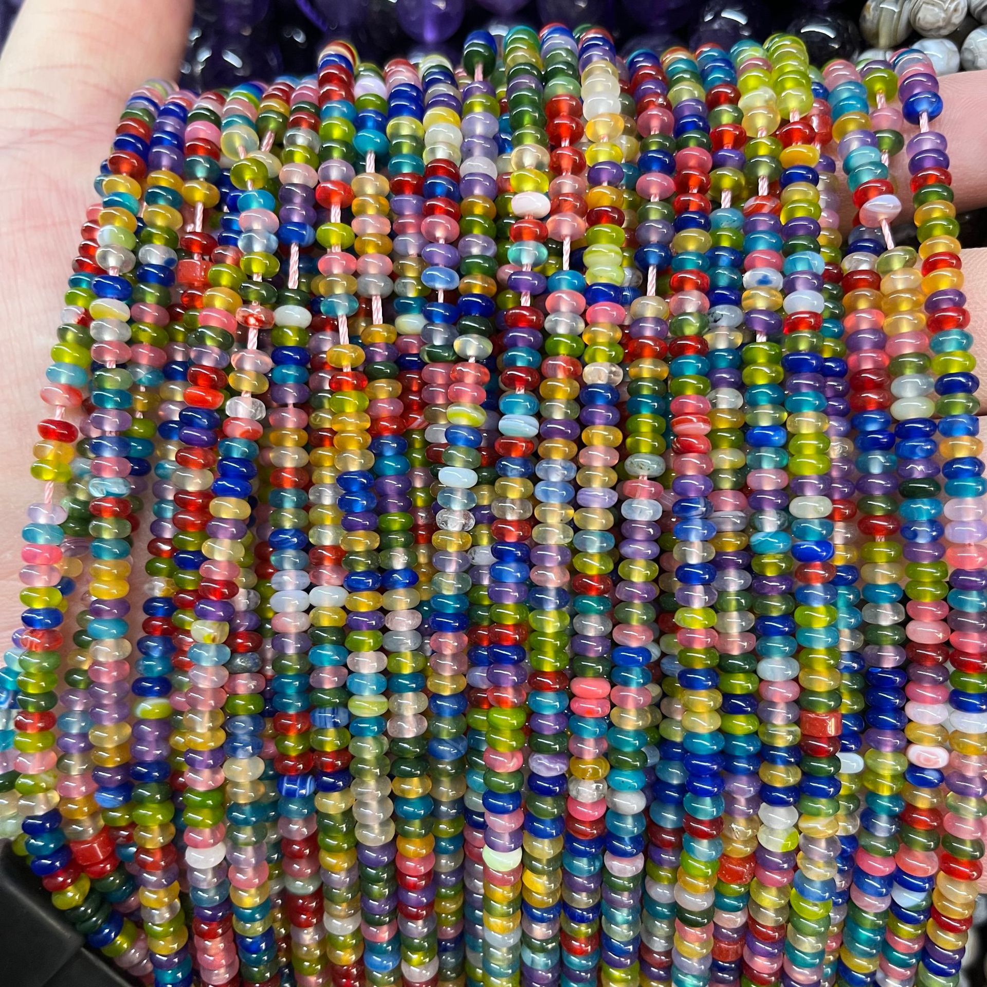 Agate Bead, Abacus, du kan DIY, flerfarvede, 2x4mm, Ca. 170pc'er/Strand, Solgt af Strand