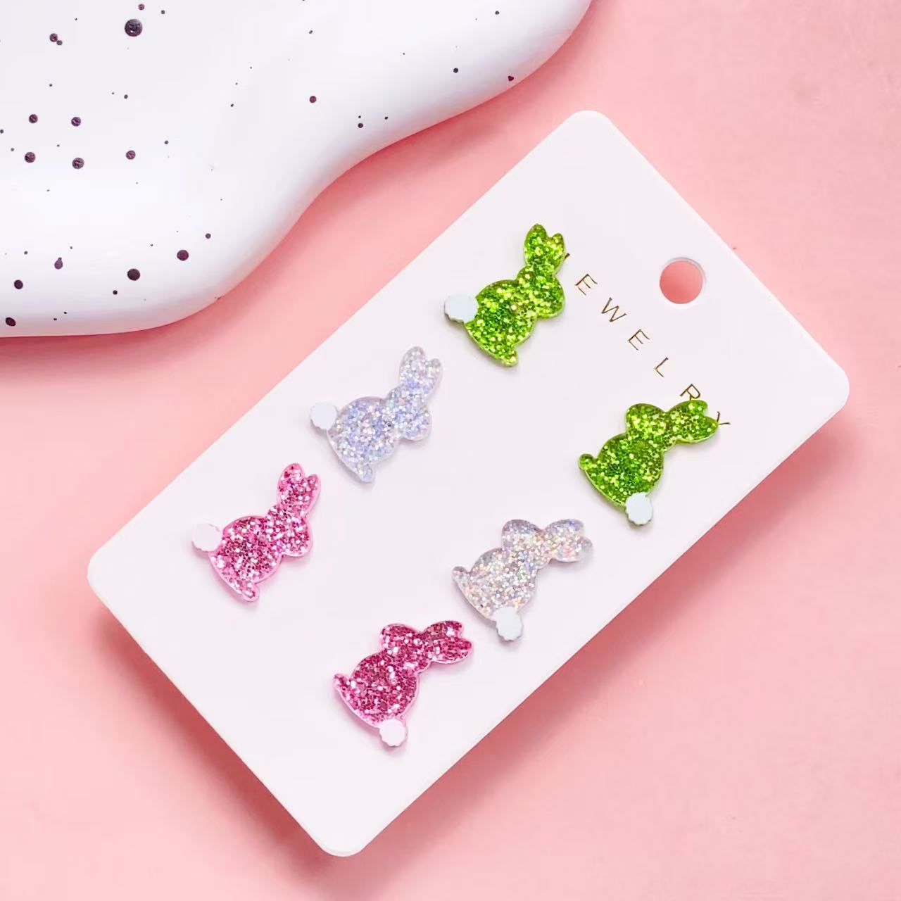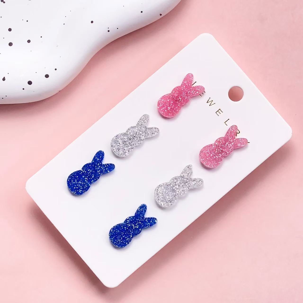 Akryl Stud Earring Set, med Træ, Kanin, tre stykker & forskellige stilarter for valg & for kvinde, 8x16mm, Solgt af sæt